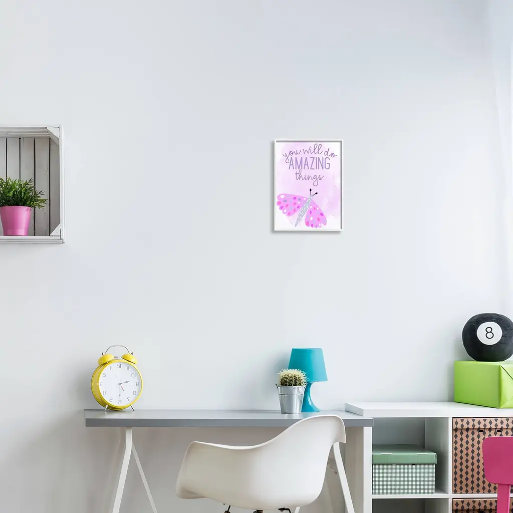 Add dimension to any room with our textured Framed Giclee Artwork. Our framed artwork is securely mounted into a 1.5-inch thick wood grain frame and ready to hang. Frames are available in three alluring styles: black, gray farmhouse and white. In addition, you should check out our oversized options if you want a statement piece. Stupell Wall Art is made in the USA.Features: Dimensions: 11 x 1.5 x 14 FramedFramed Giclee Sizes Include Standard: 11 x 1.5 x 14 Large: 16 x 1.5 x 20 Oversized: 24 x 1.5 x 30Wall Art is Ready to Hang - No Installation or Hardware Needed. For Easy Set Up Lean or Layer Artwork on Shelf or Against Wall.Our giclée prints are carefully mounted on a durable MDF backing, and then perfectly finished in a 1.5 inch thick woodgrain frame. Mounted frame colors include black, gray farmhouse and white. Made In USA.Artwork Relates To: Purple, Insect, You Will Do Amazing ThingsDesign by Kim Allen