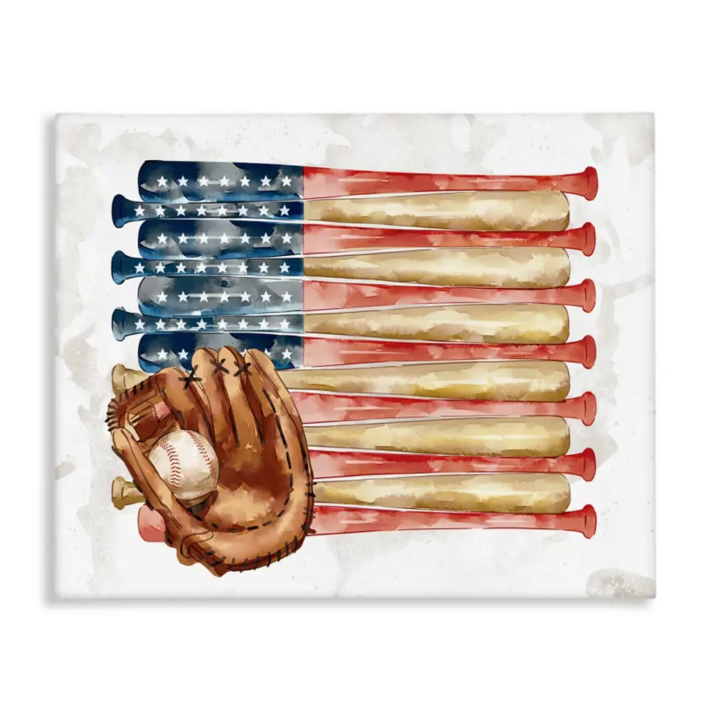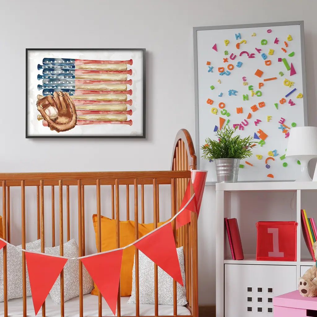 Stupell American Baseball Flag Children's Sports Mitt Framed Wall Art - 24 X 30 - Black
