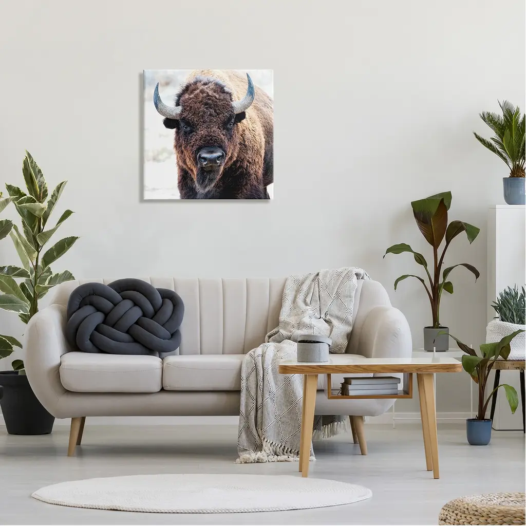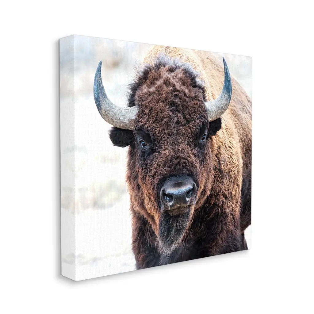 We create our stretched canvas to the highest standards. Using only the highest quality inks and canvas on Mimaki printers, we hand-cut and stretch each piece over a 1.5-inch thick wooden frame for hanging. As a result, the art comes ready to hang on the sturdy ledge with no installation required. Stupell Wall Art is made in the USA.Features: Dimensions: 17 x 1.5 x 17 InchesStretched Canvas Sizes Include Standard: 17 x 1.5 x 17 Large: 24 x 1.5 x 24 X-Large: 30 x 1.5 x 30 Oversized: 36 x 1.5 x 36Wall Art is Ready to Hang with Hardware Free Hanging. No installation required. For Easy Set Up Lean or Layer Artwork on Shelf or Against Wall.Our stretched canvas is created with the highest standards. We use only the highest quality inks and canvas on our in house Mimaki printers, and then hand cut and stretch each piece over a 1.5 inch thick wooden frame for hanging. Made In USA.Artwork Relates To: Animal, Bison, Mammal, Wildlife, Portrait, PhotographyDesign by Lena Owens