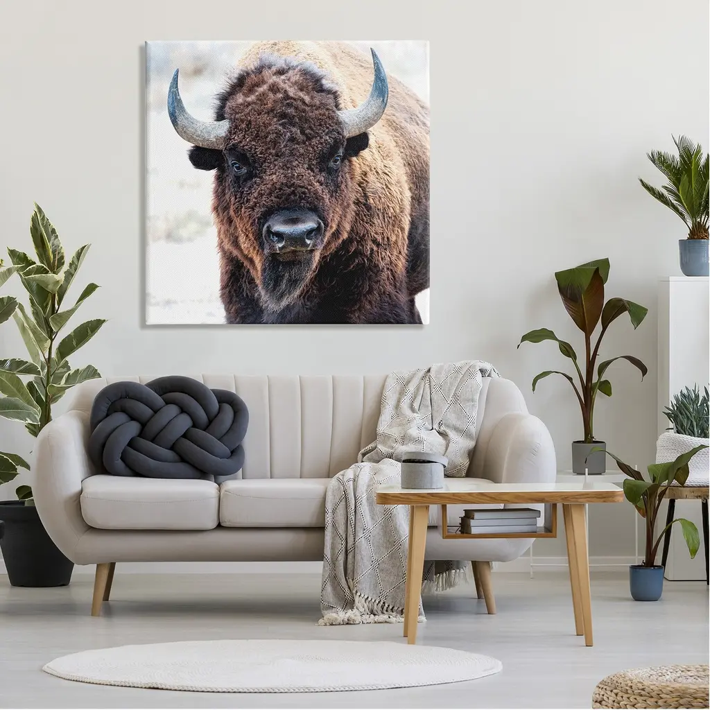 We create our stretched canvas to the highest standards. Using only the highest quality inks and canvas on Mimaki printers, we hand-cut and stretch each piece over a 1.5-inch thick wooden frame for hanging. As a result, the art comes ready to hang on the sturdy ledge with no installation required. Stupell Wall Art is made in the USA.Features: Dimensions: 17 x 1.5 x 17 InchesStretched Canvas Sizes Include Standard: 17 x 1.5 x 17 Large: 24 x 1.5 x 24 X-Large: 30 x 1.5 x 30 Oversized: 36 x 1.5 x 36Wall Art is Ready to Hang with Hardware Free Hanging. No installation required. For Easy Set Up Lean or Layer Artwork on Shelf or Against Wall.Our stretched canvas is created with the highest standards. We use only the highest quality inks and canvas on our in house Mimaki printers, and then hand cut and stretch each piece over a 1.5 inch thick wooden frame for hanging. Made In USA.Artwork Relates To: Animal, Bison, Mammal, Wildlife, Portrait, PhotographyDesign by Lena Owens