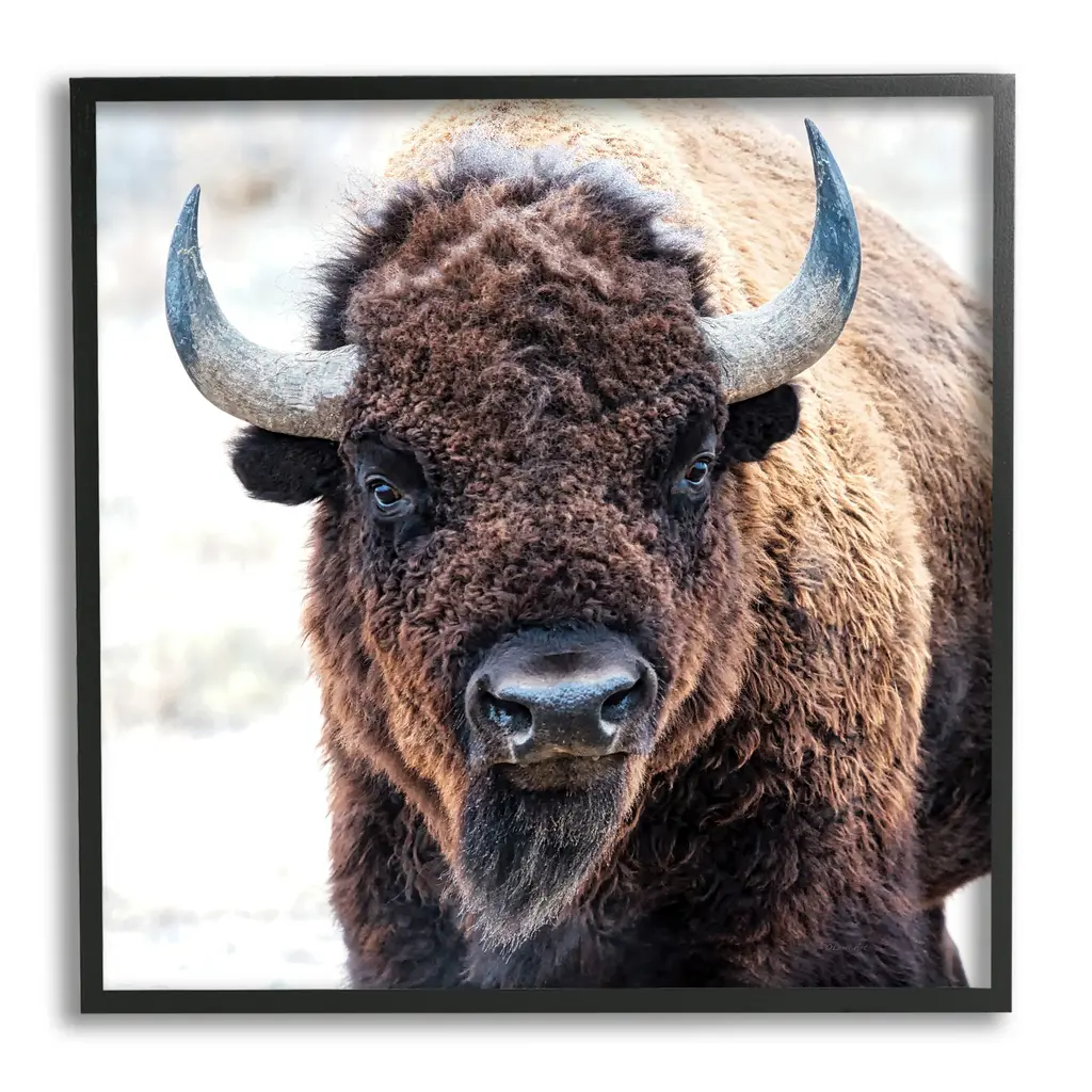 Add dimension to any room with our textured Framed Giclee Artwork. Our framed artwork is securely mounted into a 1.5-inch thick wood grain frame and ready to hang. Frames are available in three alluring styles: black, gray farmhouse and white. In addition, you should check out our oversized options if you want a statement piece. Stupell Wall Art is made in the USA.Features: Dimensions: 12 x 1.5 x 12 FramedFramed Giclee Sizes Include Standard: 12 x 1.5 x 12 Large: 17 x 1.5 x 17 Oversized: 24 x 1.5 x 24Wall Art is Ready to Hang with Hardware Free Hanging. No installation required. For Easy Set Up Lean or Layer Artwork on Shelf or Against Wall.Our giclée prints are carefully mounted on a durable MDF backing, and then perfectly finished in a 1.5 inch thick woodgrain frame. Mounted frame colors include black, gray farmhouse and white. Made In USA.Artwork Relates To: Animal, Bison, Mammal, Wildlife, Portrait, PhotographyDesign by Lena Owens