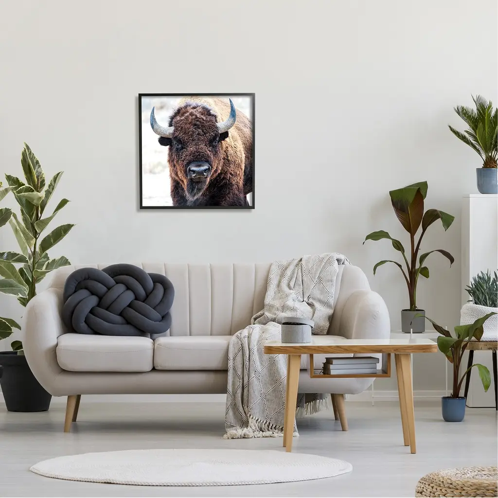 Add dimension to any room with our textured Framed Giclee Artwork. Our framed artwork is securely mounted into a 1.5-inch thick wood grain frame and ready to hang. Frames are available in three alluring styles: black, gray farmhouse and white. In addition, you should check out our oversized options if you want a statement piece. Stupell Wall Art is made in the USA.Features: Dimensions: 12 x 1.5 x 12 FramedFramed Giclee Sizes Include Standard: 12 x 1.5 x 12 Large: 17 x 1.5 x 17 Oversized: 24 x 1.5 x 24Wall Art is Ready to Hang with Hardware Free Hanging. No installation required. For Easy Set Up Lean or Layer Artwork on Shelf or Against Wall.Our giclée prints are carefully mounted on a durable MDF backing, and then perfectly finished in a 1.5 inch thick woodgrain frame. Mounted frame colors include black, gray farmhouse and white. Made In USA.Artwork Relates To: Animal, Bison, Mammal, Wildlife, Portrait, PhotographyDesign by Lena Owens