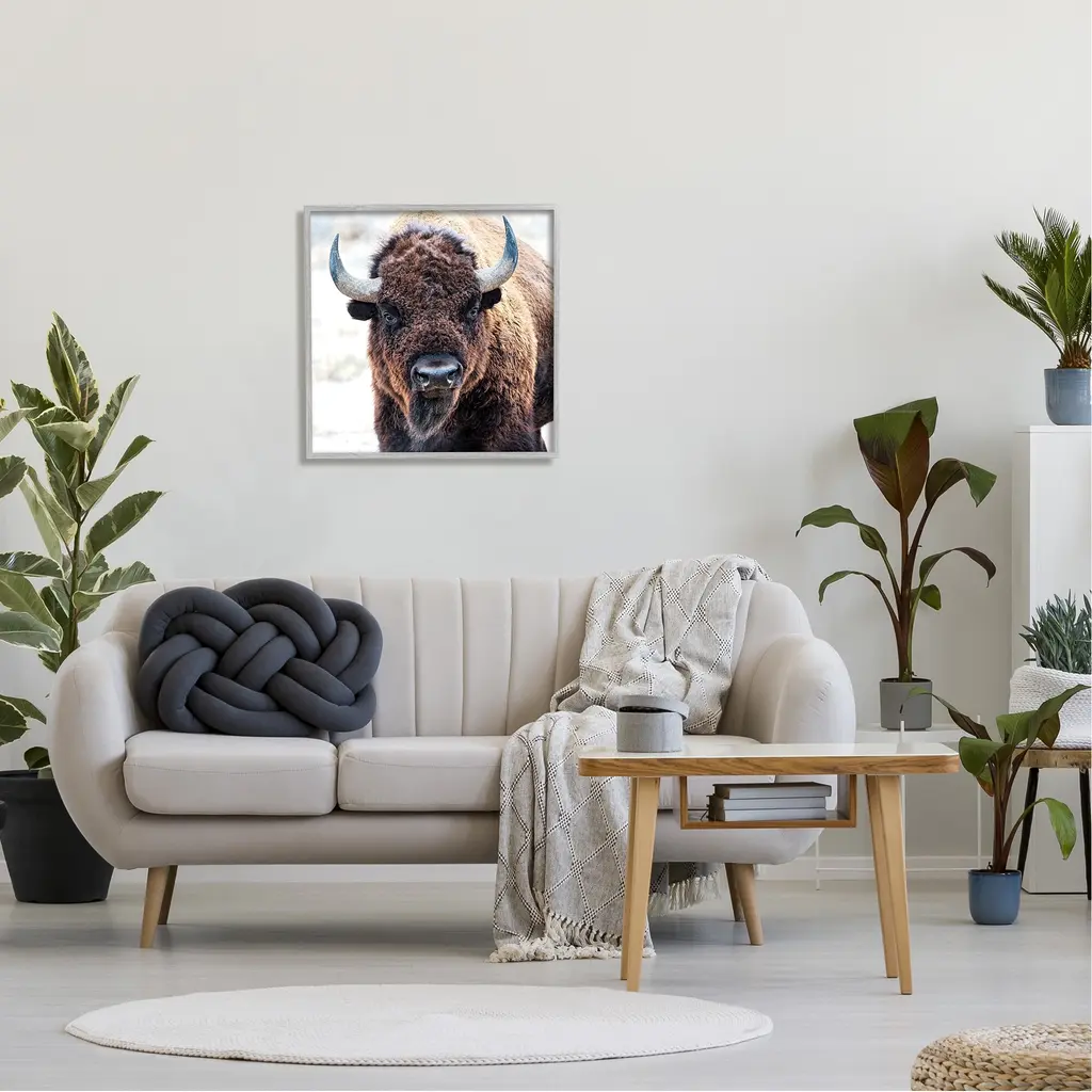 Add dimension to any room with our textured Framed Giclee Artwork. Our framed artwork is securely mounted into a 1.5-inch thick wood grain frame and ready to hang. Frames are available in three alluring styles: black, gray farmhouse and white. In addition, you should check out our oversized options if you want a statement piece. Stupell Wall Art is made in the USA.Features: Dimensions: 12 x 1.5 x 12 FramedFramed Giclee Sizes Include Standard: 12 x 1.5 x 12 Large: 17 x 1.5 x 17 Oversized: 24 x 1.5 x 24Wall Art is Ready to Hang with Hardware Free Hanging. No installation required. For Easy Set Up Lean or Layer Artwork on Shelf or Against Wall.Our giclée prints are carefully mounted on a durable MDF backing, and then perfectly finished in a 1.5 inch thick woodgrain frame. Mounted frame colors include black, gray farmhouse and white. Made In USA.Artwork Relates To: Animal, Bison, Mammal, Wildlife, Portrait, PhotographyDesign by Lena Owens