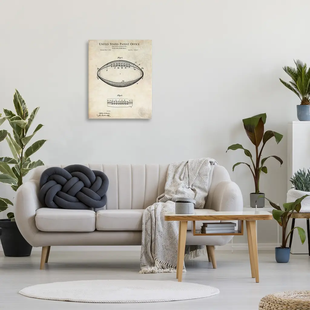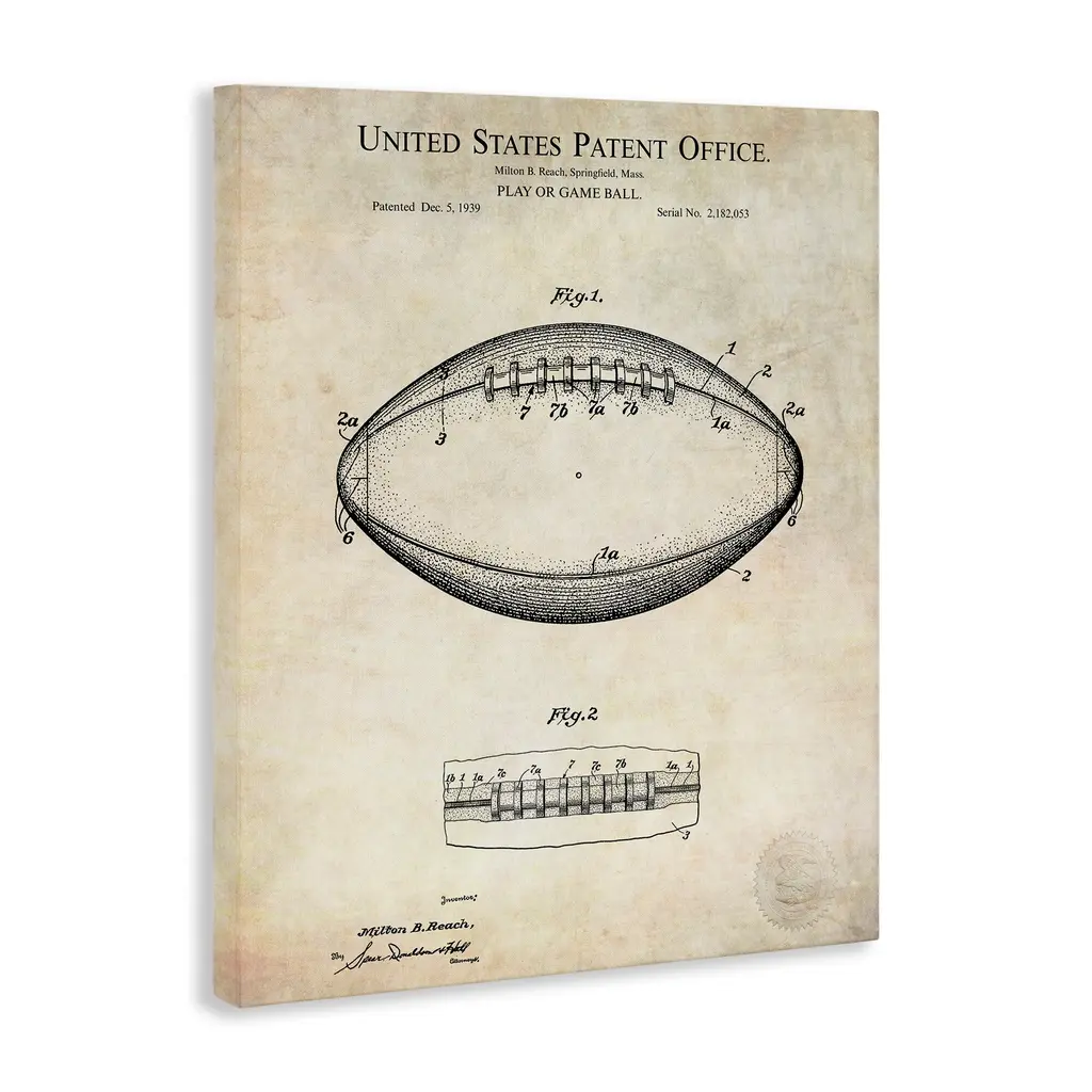 Proudly made in the USA, Our stretched canvas is created with the highest standards. We use only the highest quality inks and canvas on our in house Mimaki printers, and then hand cut and stretch each piece over a 1.5 inch thick wooden frame for hanging. The art comes ready to hang with no installation required.Features: Wall Art is Ready to Hang - No Installation or Hardware Needed. For Easy Set Up Lean or Layer Artwork on Shelf or Against Wall.Our stretched canvas is created with the highest standards. We use only the highest quality inks and canvas on our in house Mimaki printers, and then hand cut and stretch each piece over a 1.5 inch thick wooden frame for hanging. Made In USA.Artwork Relates To: Sport; Sports; Ball; Football Design by Karl Hronek