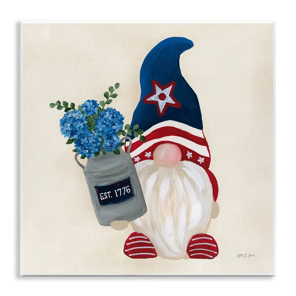 Our wall plaques start as high-quality lithograph prints mounted on durable 0.5-inch thick MDF wood. Each piece is hand finished and comes with a fresh layer of white foil on the sides to give it a crisp, clean look. Plaques arrive ready to hang without installation and come with removable plastic corners to keep them from damage in transit. Stupell Wall Art is made in the USA.Features: Dimensions: 15 x 0.5 x 10 InchesWall Plaque Product Sizes Include 15"x10" and 19"x13". All wall plaque products have a 0.5" Depth. Wall Art is Ready to Hang with Hardware Free Hanging. No installation required. For Easy Set Up Lean or Layer Artwork on Shelf or Against Wall.All of our wall plaques start off as high quality lithograph prints that are then mounted on durable 0.5 inch thick MDF wood. Each piece is hand finished and comes with a fresh layer of foil on the sides to give it a crisp clean look. Made In USA.Artwork Relates To: Americana, Patriotic, Summer, Gnome, Flower, FloralDesign by Yvette St. Amant