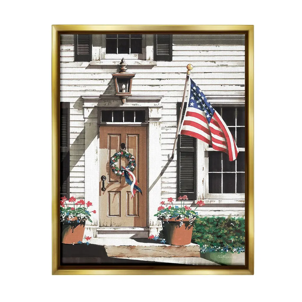 Our wall plaques start as high-quality lithograph prints mounted on durable 0.5-inch thick MDF wood. Each piece is hand finished and comes with a fresh layer of white foil on the sides to give it a crisp, clean look. Plaques arrive ready to hang without installation and come with removable plastic corners to keep them from damage in transit. Stupell Wall Art is made in the USA.Features: Dimensions: 15 x 0.5 x 10 InchesWall Plaque Product Sizes Include 15"x10" and 19"x13". All wall plaque products have a 0.5" Depth. Wall Art is Ready to Hang with Hardware Free Hanging. No installation required. For Easy Set Up Lean or Layer Artwork on Shelf or Against Wall.All of our wall plaques start off as high quality lithograph prints that are then mounted on durable 0.5 inch thick MDF wood. Each piece is hand finished and comes with a fresh layer of foil on the sides to give it a crisp clean look. Made In USA.Artwork Relates To: Rocking Chair, Plant, Flower, Flag, Flower Arrangement, Milk Can, Potted Plant, Architecture, Building, House, PorchDesign by Petal Prints Design