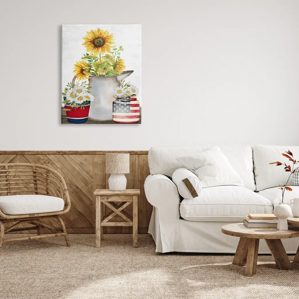 We create our stretched canvas to the highest standards. Using only the highest quality inks and canvas on Mimaki printers, we hand-cut and stretch each piece over a 1.5-inch thick wooden frame for hanging. As a result, the art comes ready to hang on the sturdy ledge with no installation required. Stupell Wall Art is made in the USA.Features: Dimensions: 16 x 1.5 x 20 InchesStretched Canvas Sizes Include Standard: 16 x 1.5 x 20 Large: 20 x 1.5 x 30 X-Large: 30 x 1.5 x 40 Oversized: 36 x 1.5 x 48Wall Art is Ready to Hang with Hardware Free Hanging. No installation required. For Easy Set Up Lean or Layer Artwork on Shelf or Against Wall.Our stretched canvas is created with the highest standards. We use only the highest quality inks and canvas on our in house Mimaki printers, and then hand cut and stretch each piece over a 1.5 inch thick wooden frame for hanging. Made In USA.Artwork Relates To: Flower, Plant, Flower Arrangement, Potted Plant, Sunflower, Daisy, Flower Bouquet, Watering Can, Gardening, Americana, Country, FloralDesign by Kim Allen