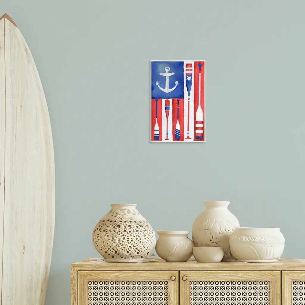 Stupell Americana Oar Flag Wall Plaque Art Design By Paul Brent - 10 X 15
