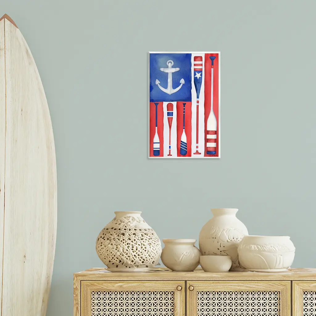 Stupell Americana Oar Flag Wall Plaque Art Design By Paul Brent - 13 X 19