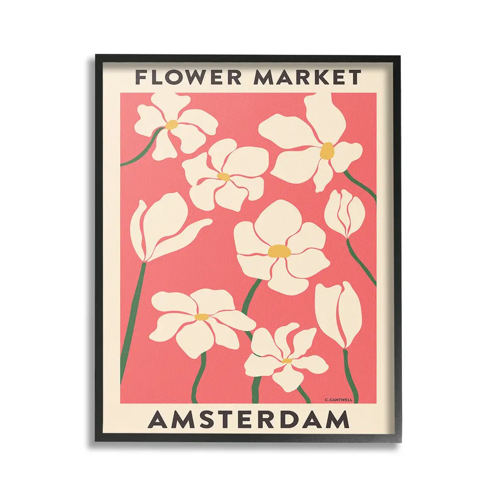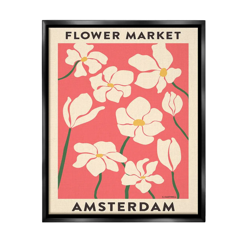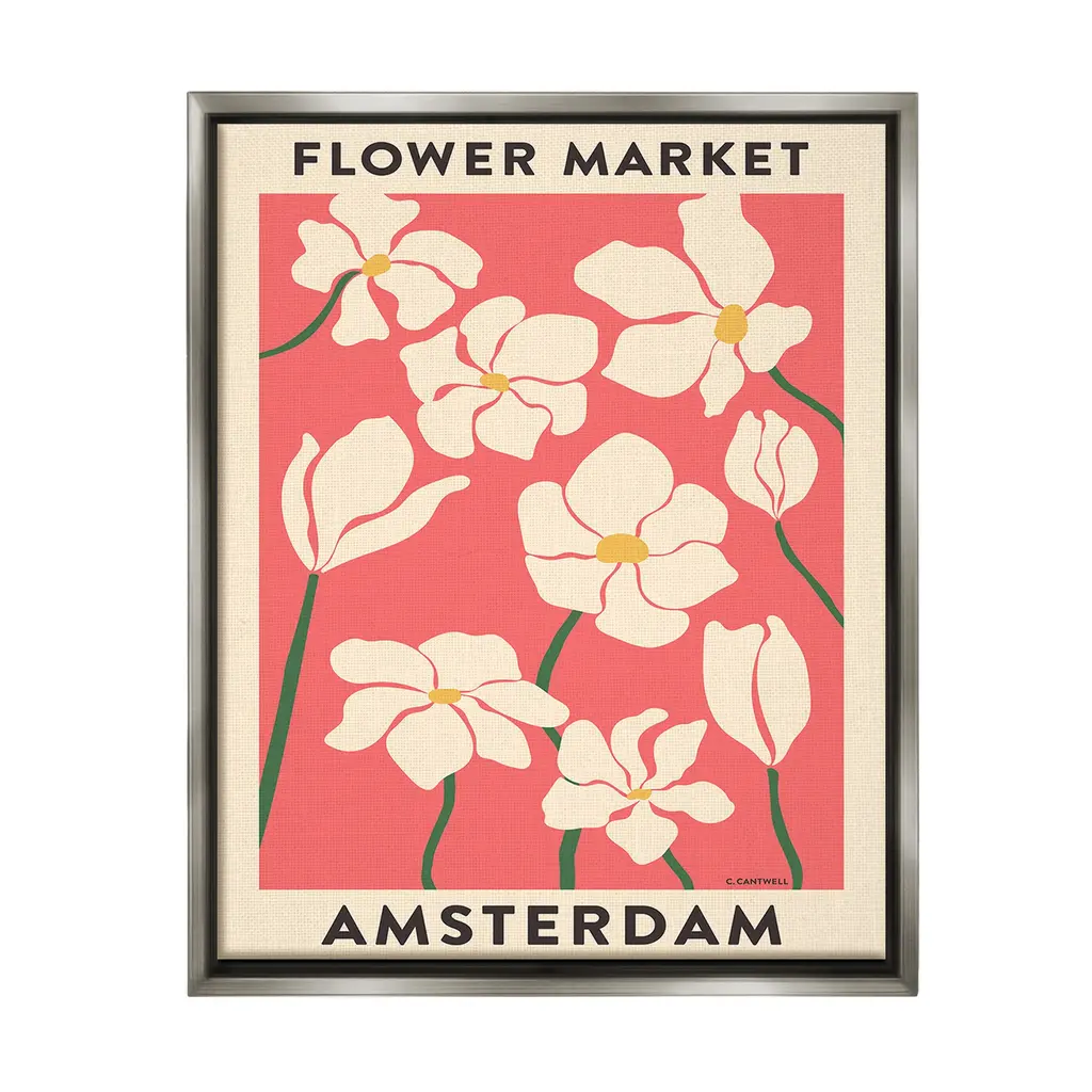 Elevate your home or office to the next level with Stupell Framed Floating Canvas Wall Art. Our premium hand-stretched canvas is mounted securely into a sturdy lightweight frame. The museum-style gap between the wrapped canvas and the box frame gives the illusion of floating artwork. Stupell Wall Art is made in the USA.Features: Dimensions: 17 x 1.7 x 21 Frame, 16 x 1.5 x 20 Canvas ArtFloating Frame Canvas Products are available in sizes 17"x21" and 25"x31". All Floating Frame Canvas Products have a 1.7" Depth.Wall Art is Ready to Hang with Hardware Free Hanging. No Installation required. For Easy Set Up Lean or Layer Artwork on Shelf or Against Wall. Artwork is Permently Fixed into the Frame.Our elevated 1.7" Thick Floating Frame is the perfect complement to our canvas style Wall Art. We use only the highest quality inks in house with industry leading printing solutions. Canvas is hand stretched over a durable wood foundation and then mounted securly into a Modern Box Frame. Made in the USA.Artwork Relates To: Pattern, Floral, Flower, Plant, Modern, Flower Market, AmsterdamDesign by Carrie Cantwell