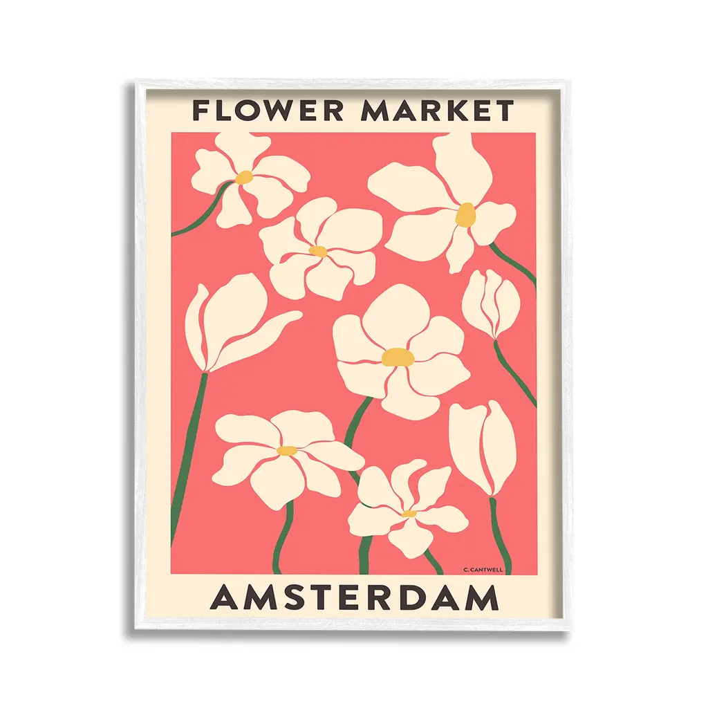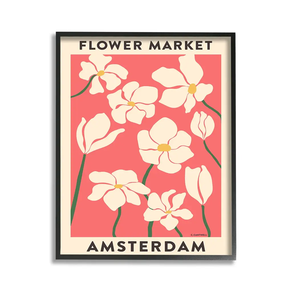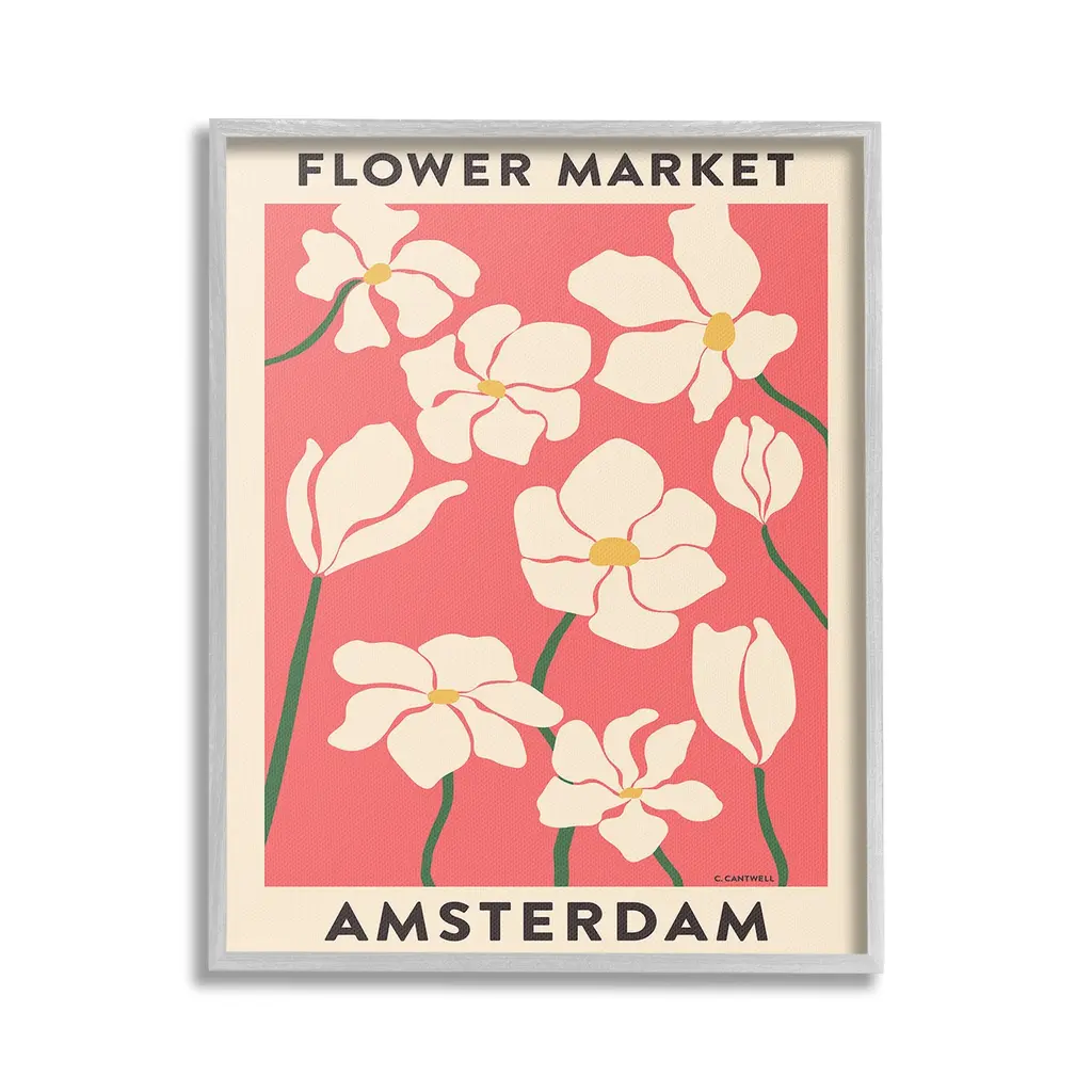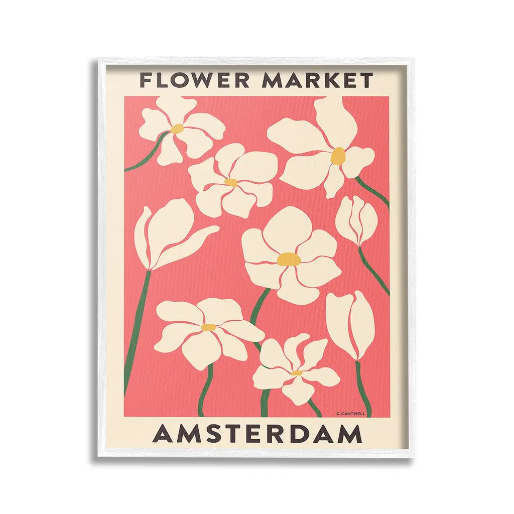 Elevate your home or office to the next level with Stupell Framed Floating Canvas Wall Art. Our premium hand-stretched canvas is mounted securely into a sturdy lightweight frame. The museum-style gap between the wrapped canvas and the box frame gives the illusion of floating artwork. Stupell Wall Art is made in the USA.Features: Dimensions: 17 x 1.7 x 21 Frame, 16 x 1.5 x 20 Canvas ArtFloating Frame Canvas Products are available in sizes 17"x21" and 25"x31". All Floating Frame Canvas Products have a 1.7" Depth.Wall Art is Ready to Hang with Hardware Free Hanging. No Installation required. For Easy Set Up Lean or Layer Artwork on Shelf or Against Wall. Artwork is Permently Fixed into the Frame.Our elevated 1.7" Thick Floating Frame is the perfect complement to our canvas style Wall Art. We use only the highest quality inks in house with industry leading printing solutions. Canvas is hand stretched over a durable wood foundation and then mounted securly into a Modern Box Frame. Made in the USA.Artwork Relates To: Pattern, Floral, Flower, Plant, Modern, Flower Market, AmsterdamDesign by Carrie Cantwell