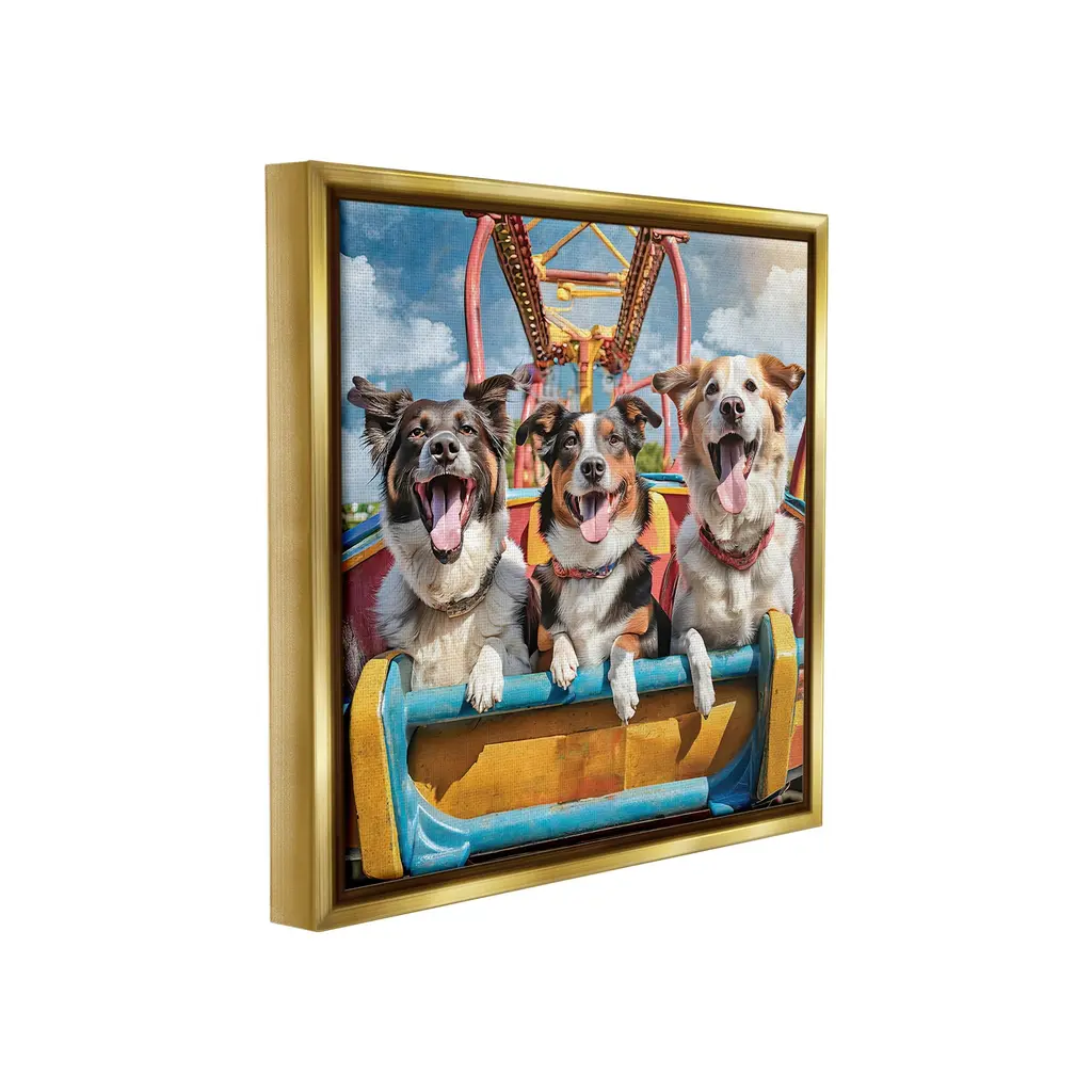 Elevate your home or office to the next level with Stupell Framed Floating Canvas Wall Art. Our premium hand-stretched canvas is mounted securely into a sturdy lightweight frame. The museum-style gap between the wrapped canvas and the box frame gives the illusion of floating artwork. Stupell Wall Art is made in the USA.Features: Dimensions: 18 x 1.7 x 18 Frame, 17 x 1.5 x 17 Canvas ArtFloating Frame Canvas Products are available in sizes 18"x18" and 25"x25". All Floating Frame Canvas Products have a 1.7" Depth.Wall Art is Ready to Hang with Hardware Free Hanging. No Installation required. For Easy Set Up Lean or Layer Artwork on Shelf or Against Wall. Artwork is Permently Fixed into the Frame.Our elevated 1.7" Thick Floating Frame is the perfect complement to our canvas style Wall Art. We use only the highest quality inks in house with industry leading printing solutions. Canvas is hand stretched over a durable wood foundation and then mounted securly into a Modern Box Frame. Made in the USA.Artwork Relates To: Animal, Canine, Dog, Mammal, Pet, Humor, Funny, Rollercoaster, Amusement ParkDesign by Jim Baldwin