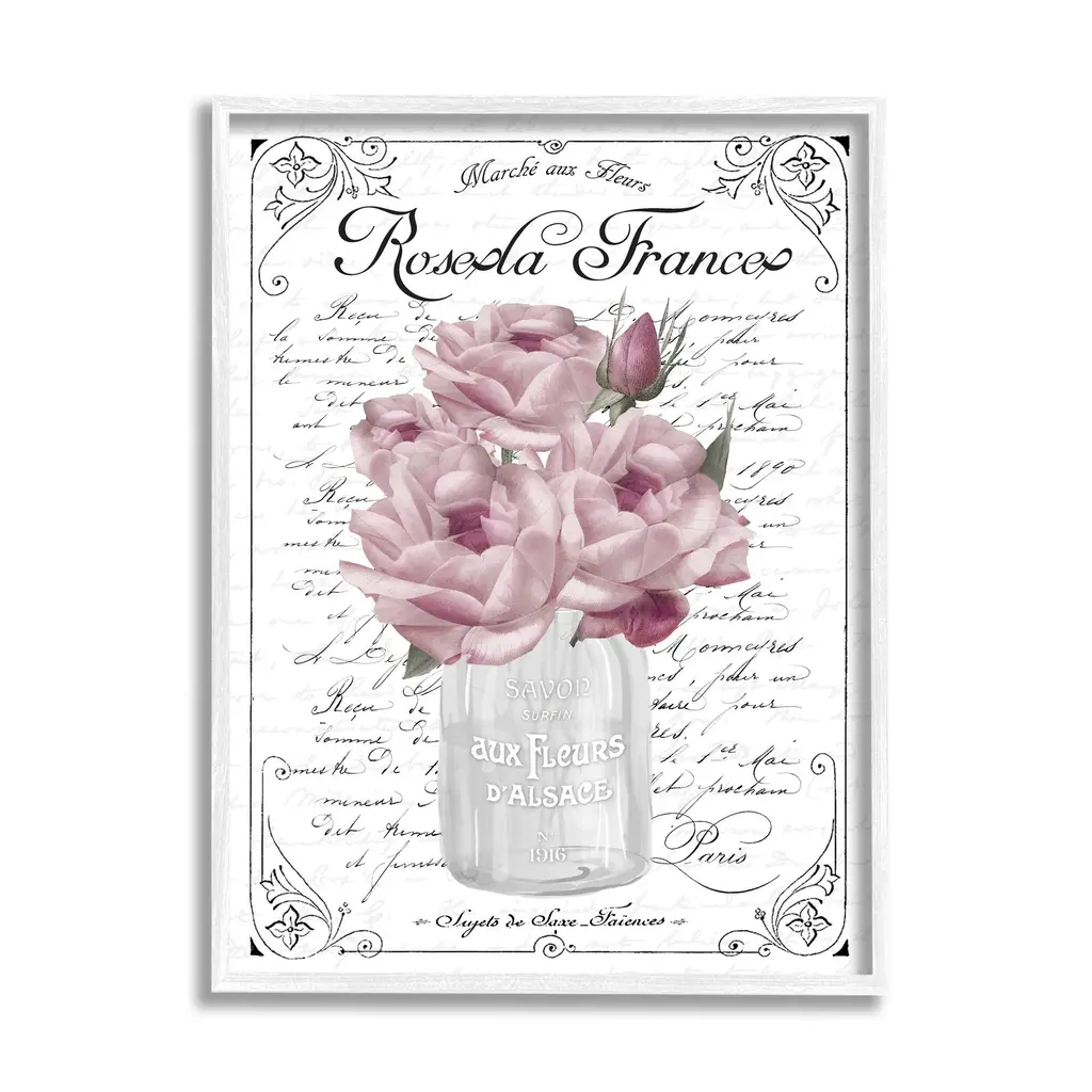 Stupell Anemone Flower French Text Fancy Floral Border Framed Wall Art, Design By Lettered And Lined - Grey - 16 X 20 - Black