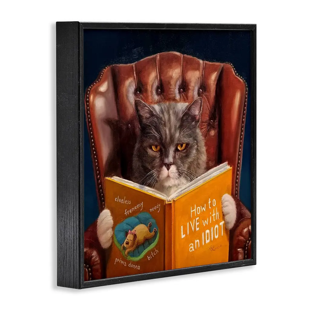 Stupell Angry Cat Reading Dog Book Feline Pet Humor Framed Wall Art - 12 X 12 - Black