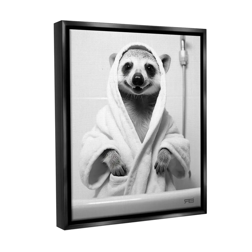 Elevate your home or office to the next level with Stupell Framed Floating Canvas Wall Art. Our premium hand-stretched canvas is mounted securely into a sturdy lightweight frame. The museum-style gap between the wrapped canvas and the box frame gives the illusion of floating artwork. Stupell Wall Art is made in the USA.Features: Dimensions: 17 x 1.7 x 21 Frame, 16 x 1.5 x 20 Canvas ArtFloating Frame Canvas Products are available in sizes 17"x21" and 25"x31". All Floating Frame Canvas Products have a 1.7" Depth.Wall Art is Ready to Hang with Hardware Free Hanging. No Installation required. For Easy Set Up Lean or Layer Artwork on Shelf or Against Wall. Artwork is Permently Fixed into the Frame.Our elevated 1.7" Thick Floating Frame is the perfect complement to our canvas style Wall Art. We use only the highest quality inks in house with industry leading printing solutions. Canvas is hand stretched over a durable wood foundation and then mounted securly into a Modern Box Frame. Made in the USA.Artwork Relates To: Tub, Bathing, Bathtub, Bathroom, Animal, Wildlife, Possum, MeerkatDesign by RB