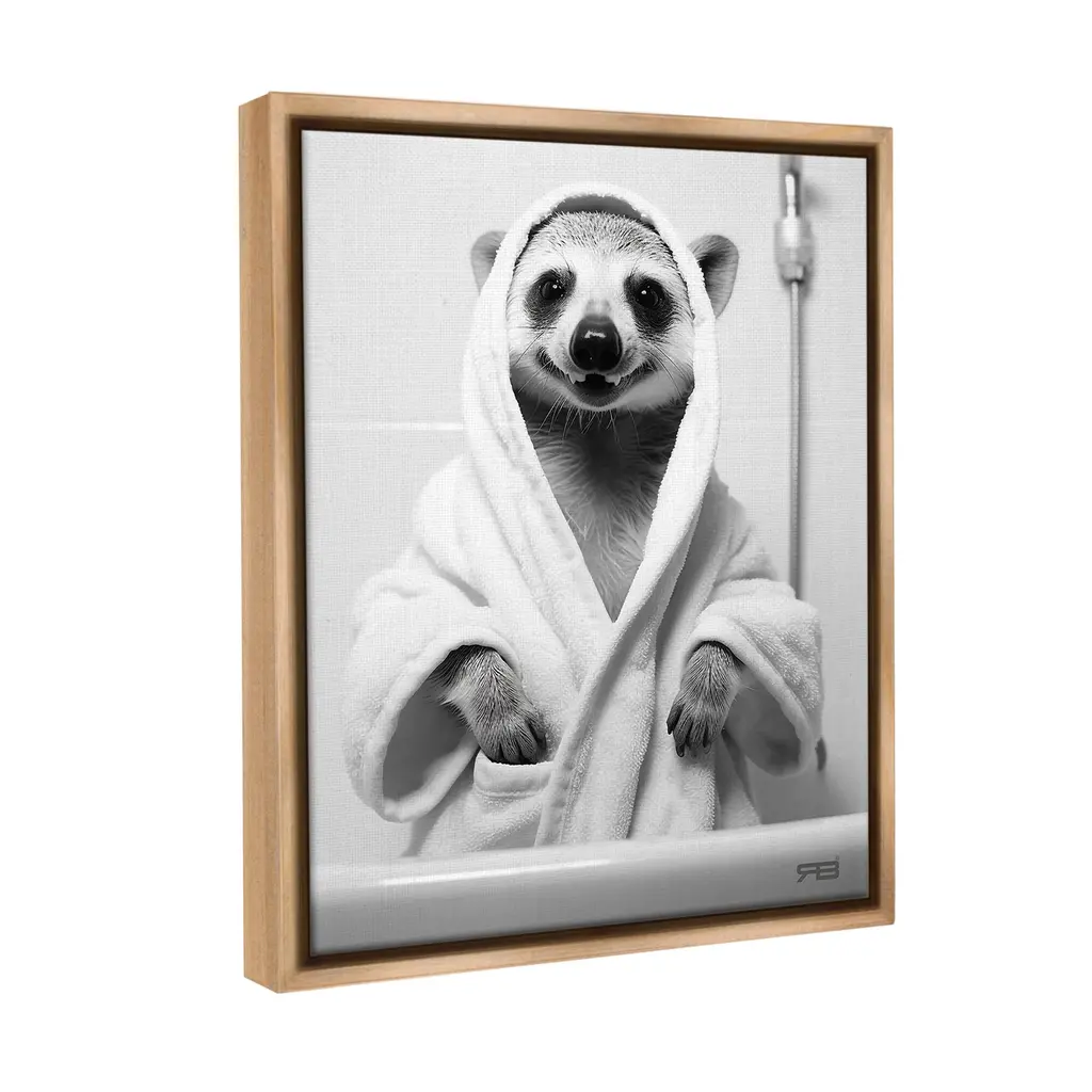 Elevate your home or office to the next level with Stupell Framed Floating Canvas Wall Art. Our premium hand-stretched canvas is mounted securely into a sturdy lightweight frame. The museum-style gap between the wrapped canvas and the box frame gives the illusion of floating artwork. Stupell Wall Art is made in the USA.Features: Dimensions: 17 x 1.7 x 21 Frame, 16 x 1.5 x 20 Canvas ArtFloating Frame Canvas Products are available in sizes 17"x21" and 25"x31". All Floating Frame Canvas Products have a 1.7" Depth.Wall Art is Ready to Hang with Hardware Free Hanging. No Installation required. For Easy Set Up Lean or Layer Artwork on Shelf or Against Wall. Artwork is Permently Fixed into the Frame.Our elevated 1.7" Thick Floating Frame is the perfect complement to our canvas style Wall Art. We use only the highest quality inks in house with industry leading printing solutions. Canvas is hand stretched over a durable wood foundation and then mounted securly into a Modern Box Frame. Made in the USA.Artwork Relates To: Tub, Bathing, Bathtub, Bathroom, Animal, Wildlife, Possum, MeerkatDesign by RB