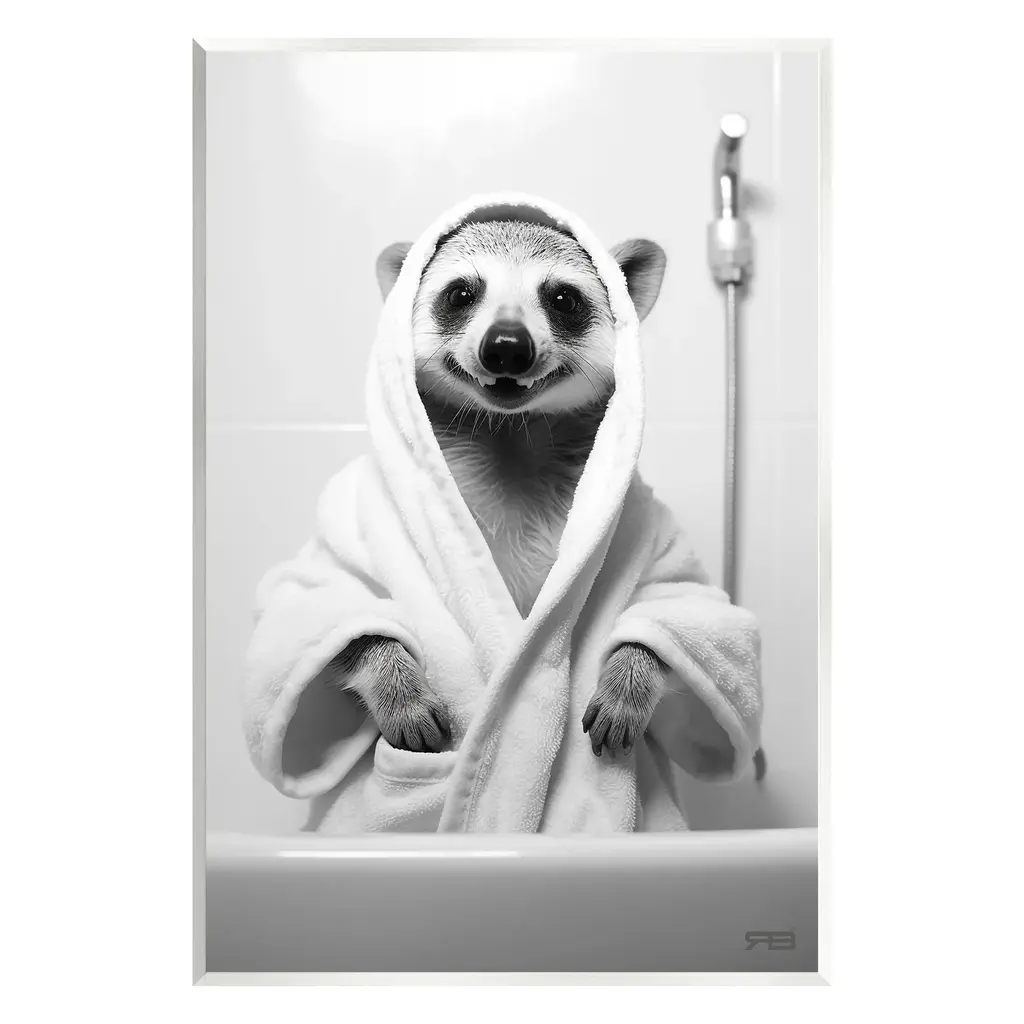 Add dimension to any room with our textured Framed Giclee Artwork. Our framed artwork is securely mounted into a 1.5-inch thick wood grain frame and ready to hang. Frames are available in three alluring styles: black, gray farmhouse and white. In addition, you should check out our oversized options if you want a statement piece. Stupell Wall Art is made in the USA.Features: Dimensions: 11 x 1.5 x 14 FramedFramed Giclee Products are available in the sizes 11"x14", 16"x20" or 24"x30". All Framed Giclee Products have a 1.5" Depth. Wall Art is Ready to Hang with Hardware Free Hanging. No installation required. For Easy Set Up Lean or Layer Artwork on Shelf or Against Wall.Our giclée prints are carefully mounted on a durable MDF backing, and then perfectly finished in a 1.5 inch thick woodgrain frame. Mounted frame colors include black, gray farmhouse and white. Made In USA.Artwork Relates To: Tub, Bathing, Bathtub, Bathroom, Animal, Wildlife, Possum, MeerkatDesign by RB
