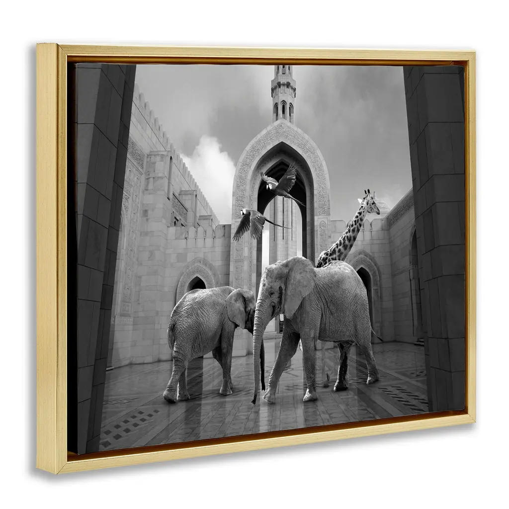 Elevate your home or office to the next level with Stupell Framed Floating Canvas Wall Art. Our premium hand-stretched canvas is mounted securely into a sturdy lightweight frame. The museum-style gap between the wrapped canvas and the box frame gives the illusion of floating artwork. Stupell Wall Art is made in the USA.Features: Dimensions: 21 x 1.7 x 17 Frame, 20 x 1.5 x 16 Canvas ArtFloating Frame Canvas Products are available in sizes 21"x17" and 31"x25". All Floating Frame Canvas Products have a 1.7" Depth.Wall Art is Ready to Hang with Hardware Free Hanging. No Installation required. For Easy Set Up Lean or Layer Artwork on Shelf or Against Wall. Artwork is Permently Fixed into the Frame.Our elevated 1.7" Thick Floating Frame is the perfect complement to our canvas style Wall Art. We use only the highest quality inks in house with industry leading printing solutions. Canvas is hand stretched over a durable wood foundation and then mounted securly into a Modern Box Frame. Made in the USA.Artwork Relates To: Architecture, Urban, City, Animal, Elephant, Giraffe, Safari, ArchDesign by Ziwei Li