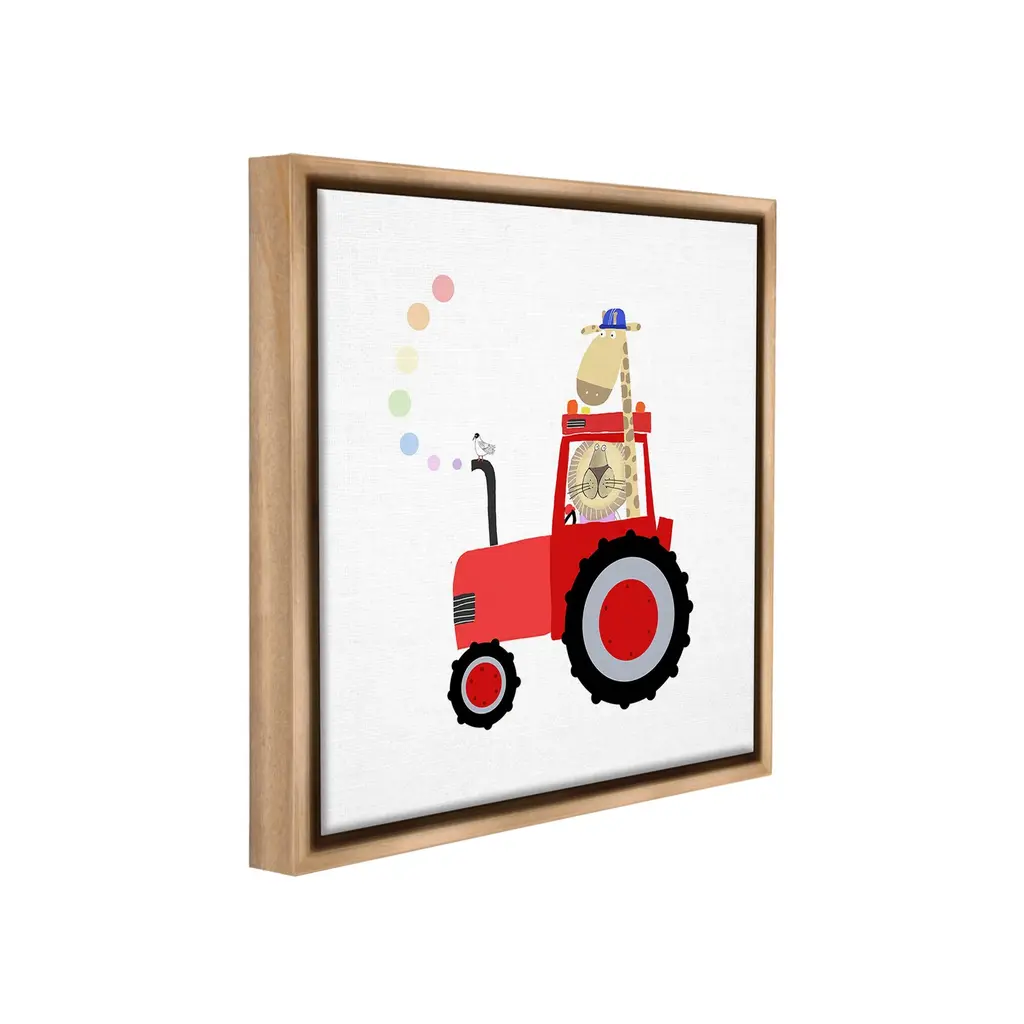Elevate your home or office to the next level with Stupell Framed Floating Canvas Wall Art. Our premium hand-stretched canvas is mounted securely into a sturdy lightweight frame. The museum-style gap between the wrapped canvas and the box frame gives the illusion of floating artwork. Stupell Wall Art is made in the USA.Features: Dimensions: 18 x 1.7 x 18 Frame, 17 x 1.5 x 17 Canvas ArtFloating Frame Canvas Products are available in sizes 18"x18" and 25"x25". All Floating Frame Canvas Products have a 1.7" Depth.Wall Art is Ready to Hang with Hardware Free Hanging. No Installation required. For Easy Set Up Lean or Layer Artwork on Shelf or Against Wall. Artwork is Permently Fixed into the Frame.Our elevated 1.7" Thick Floating Frame is the perfect complement to our canvas style Wall Art. We use only the highest quality inks in house with industry leading printing solutions. Canvas is hand stretched over a durable wood foundation and then mounted securly into a Modern Box Frame. Made in the USA.Artwork Relates To: Animal, Bird, Tractor, Vehicle, Lion, Giraffe, Rainbow, ConstructionDesign by Carla Daly