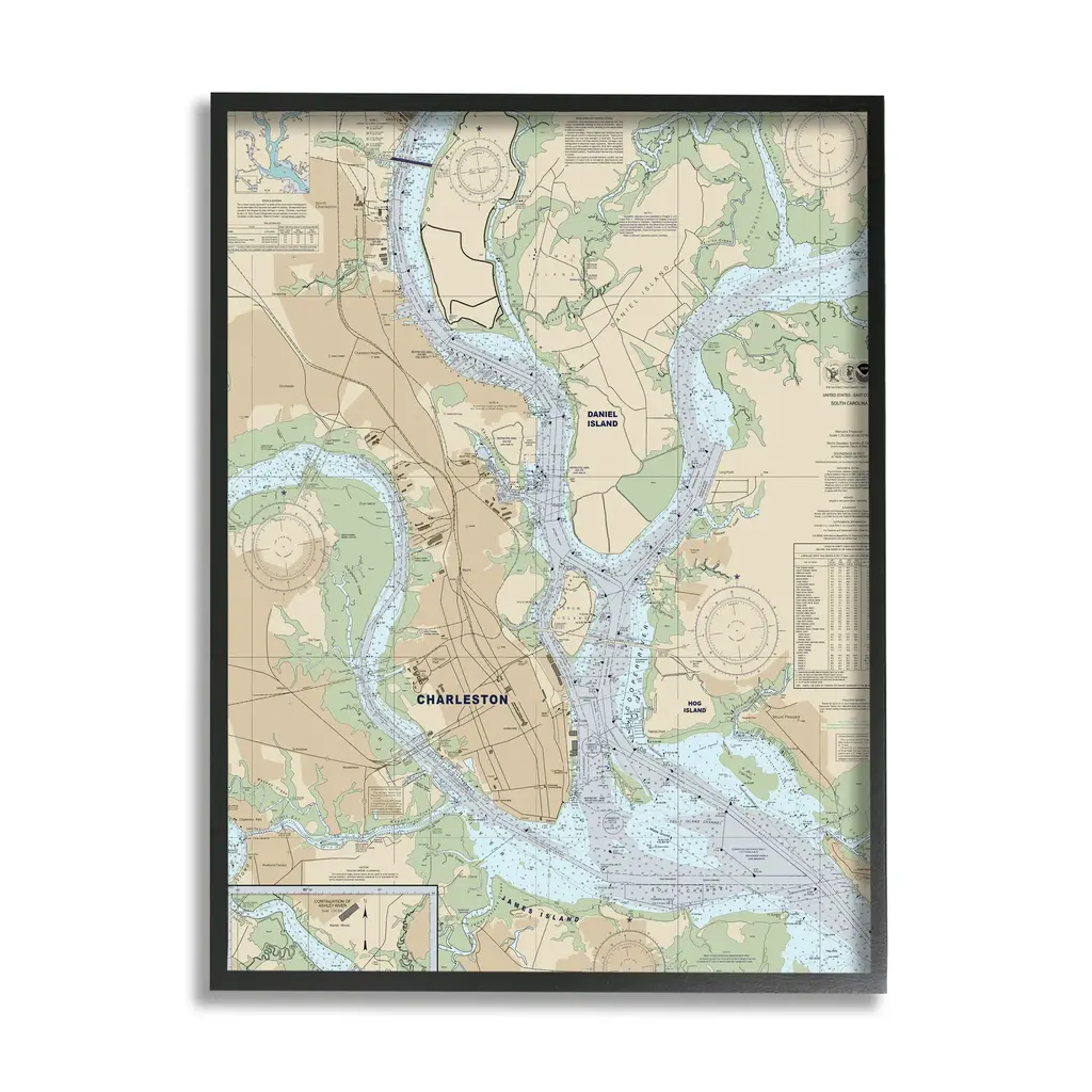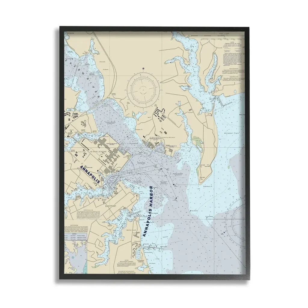 Stupell Annapolis Harbor Nautical Map Traditional Cartography Chart Framed Wall Art - 11 X 14 - White