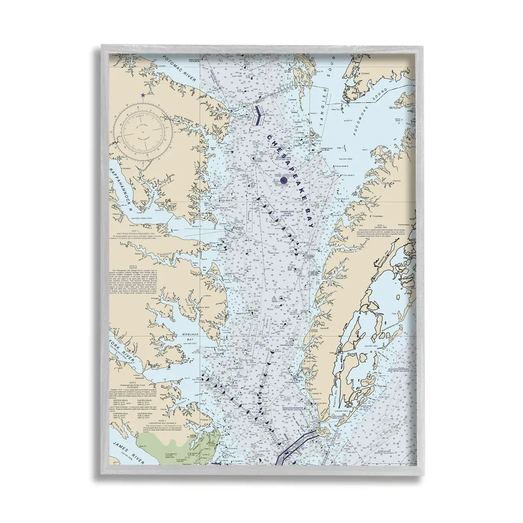 Stupell Annapolis Harbor Nautical Map Traditional Cartography Chart Framed Wall Art - 24 X 30 - White