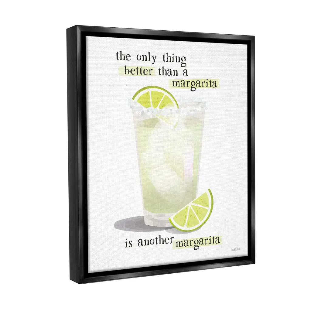 Elevate your home or office to the next level with Stupell Framed Floating Canvas Wall Art. Our premium hand-stretched canvas is mounted securely into a sturdy lightweight frame. The museum-style gap between the wrapped canvas and the box frame gives the illusion of floating artwork. Stupell Wall Art is made in the USA.Features: Dimensions: 17 x 1.7 x 21 Frame, 16 x 1.5 x 20 Canvas ArtFloating Frame Canvas Products are available in sizes 17"x21" and 25"x31". All Floating Frame Canvas Products have a 1.7" Depth.Wall Art is Ready to Hang with Hardware Free Hanging. No Installation required. For Easy Set Up Lean or Layer Artwork on Shelf or Against Wall. Artwork is Permently Fixed into the Frame.Our elevated 1.7" Thick Floating Frame is the perfect complement to our canvas style Wall Art. We use only the highest quality inks in house with industry leading printing solutions. Canvas is hand stretched over a durable wood foundation and then mounted securly into a Modern Box Frame. Made in the USA.Artwork Relates To: Beverage, Bar, Citrus, Fruit, Lime, Alcohol, Cocktail, Mojito, Margarita, The Only Thing Better than a Margarita is Another MargaritaDesign by House Fenway