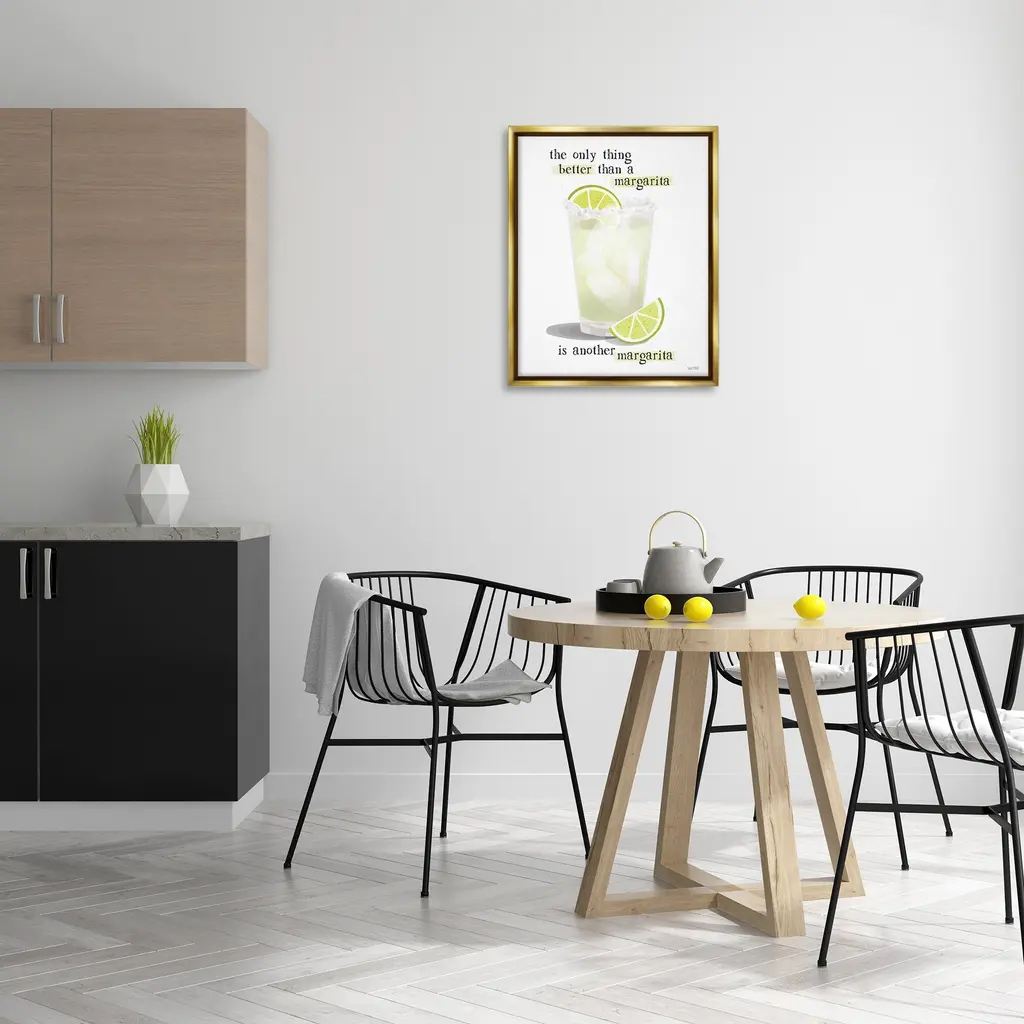 Elevate your home or office to the next level with Stupell Framed Floating Canvas Wall Art. Our premium hand-stretched canvas is mounted securely into a sturdy lightweight frame. The museum-style gap between the wrapped canvas and the box frame gives the illusion of floating artwork. Stupell Wall Art is made in the USA.Features: Dimensions: 17 x 1.7 x 21 Frame, 16 x 1.5 x 20 Canvas ArtFloating Frame Canvas Products are available in sizes 17"x21" and 25"x31". All Floating Frame Canvas Products have a 1.7" Depth.Wall Art is Ready to Hang with Hardware Free Hanging. No Installation required. For Easy Set Up Lean or Layer Artwork on Shelf or Against Wall. Artwork is Permently Fixed into the Frame.Our elevated 1.7" Thick Floating Frame is the perfect complement to our canvas style Wall Art. We use only the highest quality inks in house with industry leading printing solutions. Canvas is hand stretched over a durable wood foundation and then mounted securly into a Modern Box Frame. Made in the USA.Artwork Relates To: Beverage, Bar, Citrus, Fruit, Lime, Alcohol, Cocktail, Mojito, Margarita, The Only Thing Better than a Margarita is Another MargaritaDesign by House Fenway