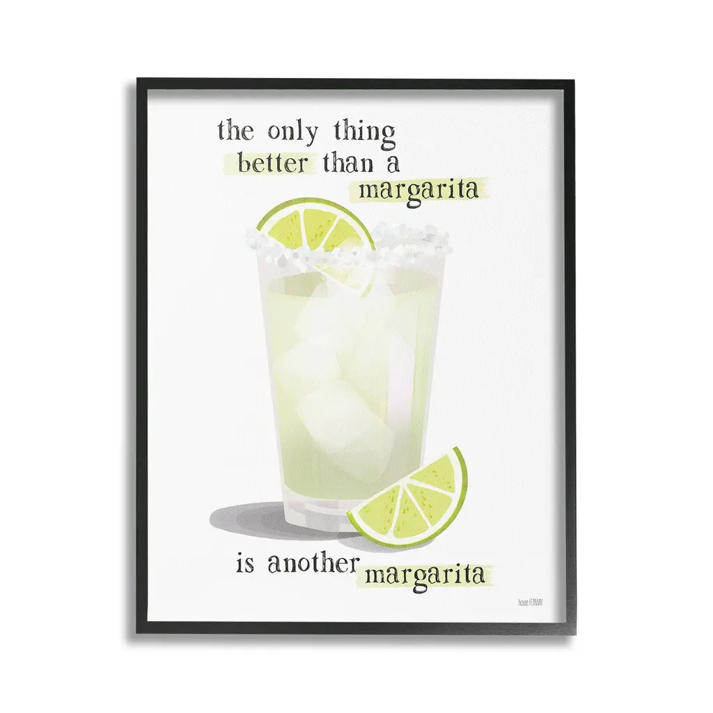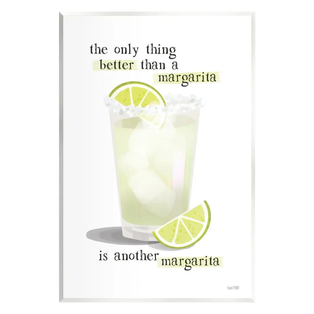 Our wall plaques start as high-quality lithograph prints mounted on durable 0.5-inch thick MDF wood. Each piece is hand finished and comes with a fresh layer of white foil on the sides to give it a crisp, clean look. Plaques arrive ready to hang without installation and come with removable plastic corners to keep them from damage in transit. Stupell Wall Art is made in the USA.Features: Dimensions: 10 x 0.5 x 15 InchesWall Plaque Product Sizes Include 10"x15" and 13"x19". All wall plaque products have a 0.5" Depth. Wall Art is Ready to Hang with Hardware Free Hanging. No installation required. For Easy Set Up Lean or Layer Artwork on Shelf or Against Wall.All of our wall plaques start off as high quality lithograph prints that are then mounted on durable 0.5 inch thick MDF wood. Each piece is hand finished and comes with a fresh layer of foil on the sides to give it a crisp clean look. Made In USA.Artwork Relates To: Beverage, Bar, Citrus, Fruit, Lime, Alcohol, Cocktail, Mojito, Margarita, The Only Thing Better than a Margarita is Another MargaritaDesign by House Fenway