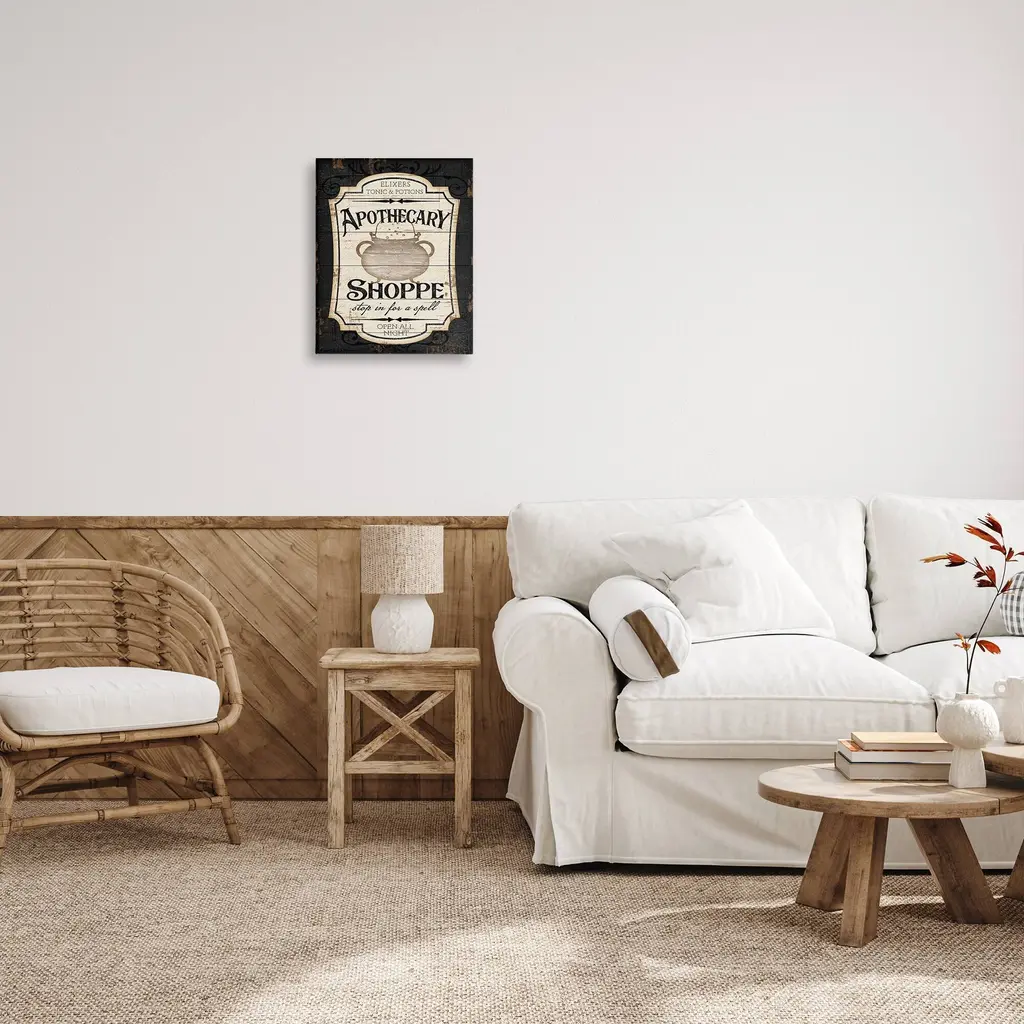 Stupell Apothecary Shoppe Spooky Halloween Sign Witch Potion Cauldron Canvas Wall Art - Black - 16 X 20