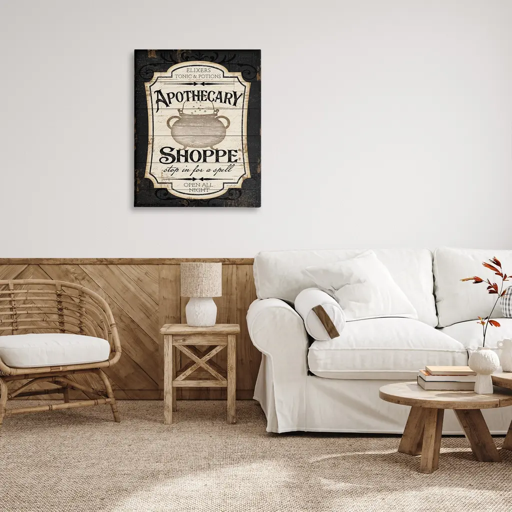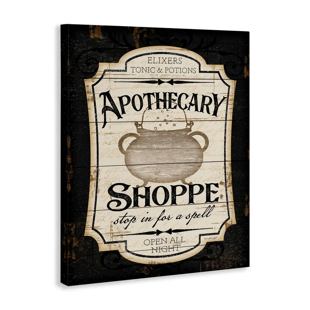 Stupell Apothecary Shoppe Spooky Halloween Sign Witch Potion Cauldron Canvas Wall Art - Black - 30 X 40