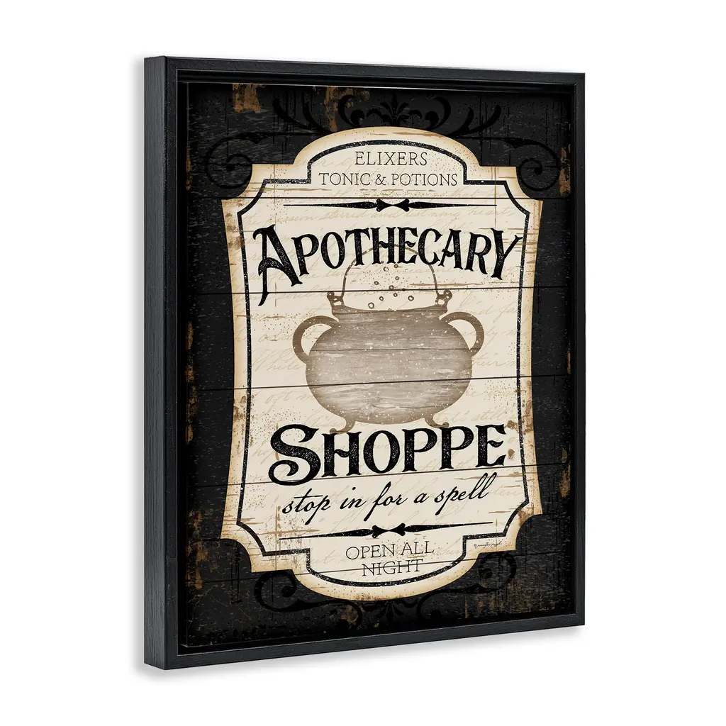 Stupell Apothecary Shoppe Spooky Sign Framed Floater Canvas Wall Art Design By Jennifer Pugh - 25 X 31 - Black