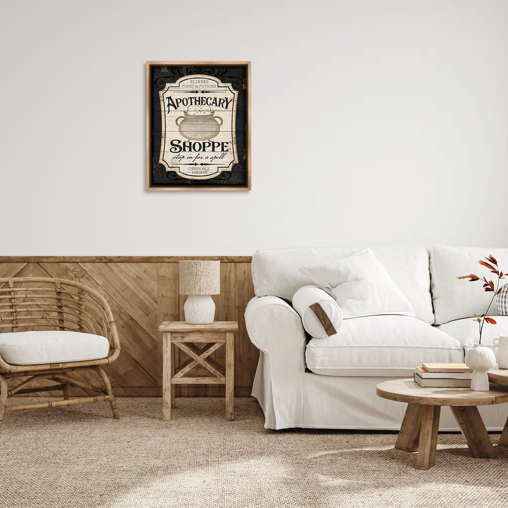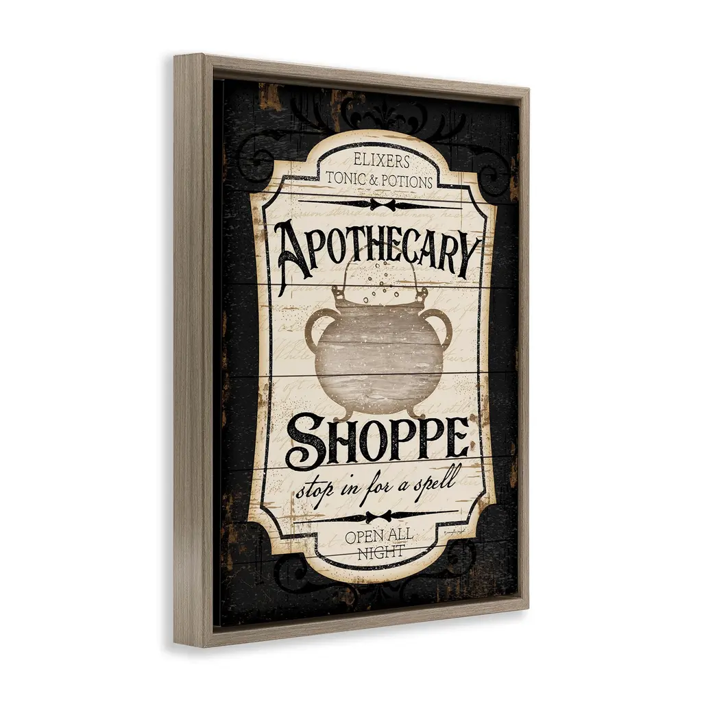 Elevate your home or office to the next level with Stupell Framed Floating Canvas Wall Art. Our premium hand-stretched canvas is mounted securely into a sturdy lightweight frame. The museum-style gap between the wrapped canvas and the box frame gives the illusion of floating artwork. Stupell Wall Art is made in the USA.Features: Dimensions: 17 x 1.7 x 21 Frame, 16 x 1.5 x 20 Canvas ArtFloating Frame Canvas Products are available in sizes 17"x21" and 25"x31". All Floating Frame Canvas Products have a 1.7" Depth.Wall Art is Ready to Hang with Hardware Free Hanging. No Installation required. For Easy Set Up Lean or Layer Artwork on Shelf or Against Wall. Artwork is Permently Fixed into the Frame.Our elevated 1.7" Thick Floating Frame is the perfect complement to our canvas style Wall Art. We use only the highest quality inks in house with industry leading printing solutions. Canvas is hand stretched over a durable wood foundation and then mounted securly into a Modern Box Frame. Made in the USA.Artwork Relates To: Halloween, Vintage, Rustic, Sign, PotionDesign by Jennifer Pugh