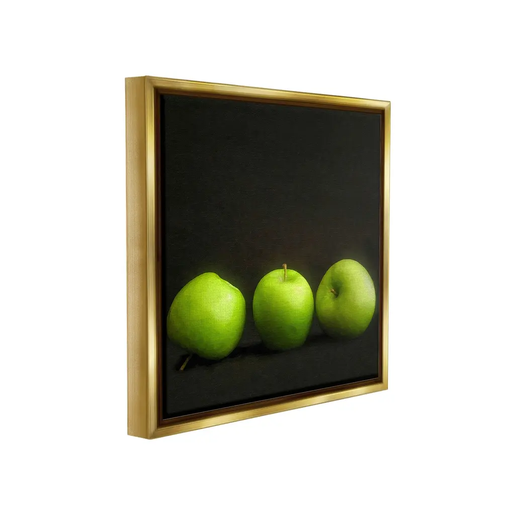 Stupell Apple Trio Still Life Framed Floater Canvas Wall Art Design By Graffitee Studios - 18 X 18 - Gold
