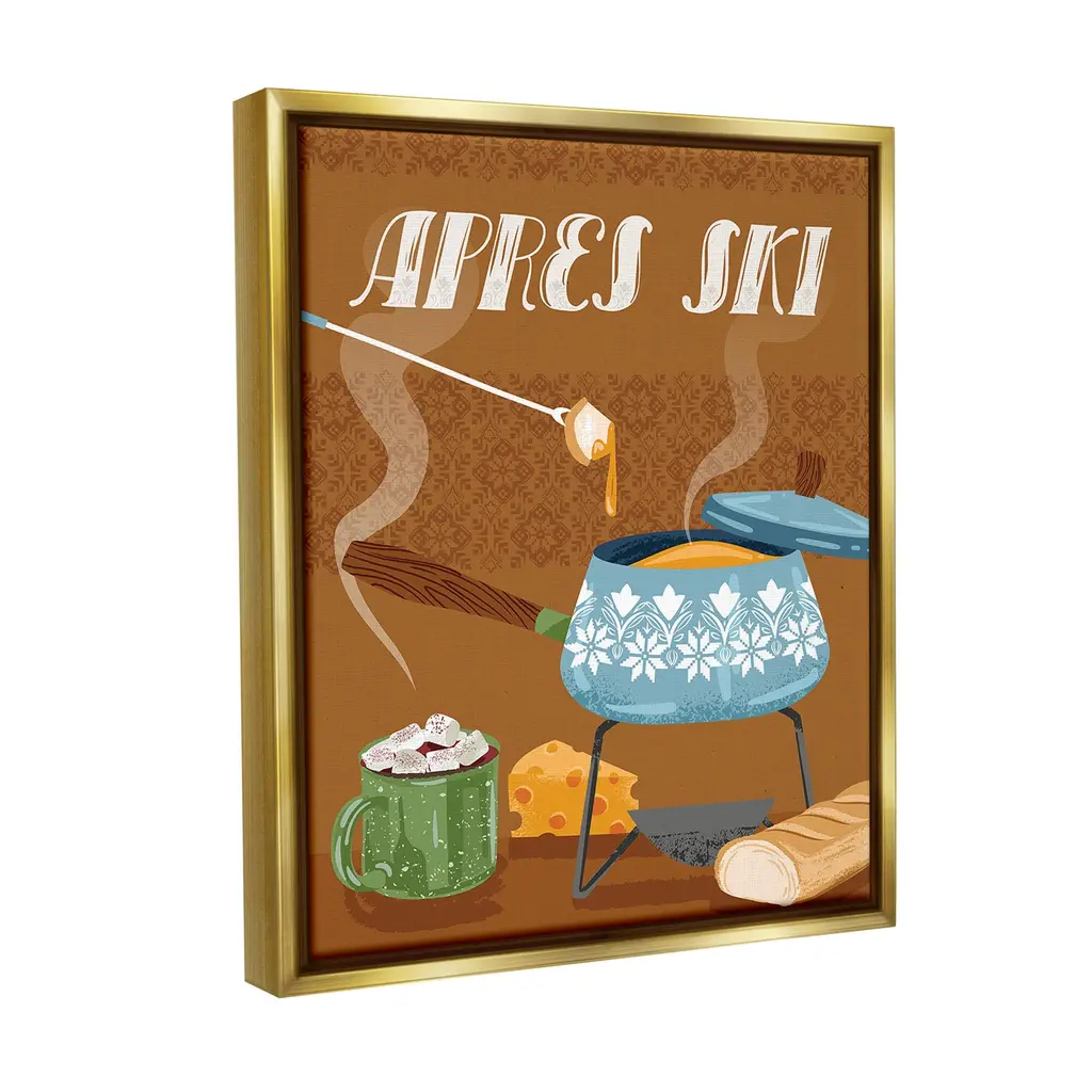 Elevate your home or office to the next level with Stupell Framed Floating Canvas Wall Art. Our premium hand-stretched canvas is mounted securely into a sturdy lightweight frame. The museum-style gap between the wrapped canvas and the box frame gives the illusion of floating artwork. Stupell Wall Art is made in the USA.Features: Dimensions: 17 x 1.7 x 21 Frame, 16 x 1.5 x 20 Canvas ArtFloating Frame Canvas Products are available in sizes 17"x21" and 25"x31". All Floating Frame Canvas Products have a 1.7" Depth.Wall Art is Ready to Hang with Hardware Free Hanging. No Installation required. For Easy Set Up Lean or Layer Artwork on Shelf or Against Wall. Artwork is Permently Fixed into the Frame.Our elevated 1.7" Thick Floating Frame is the perfect complement to our canvas style Wall Art. We use only the highest quality inks in house with industry leading printing solutions. Canvas is hand stretched over a durable wood foundation and then mounted securly into a Modern Box Frame. Made in the USA.Artwork Relates To: Fondue, Cocoa, Coffee, Mug, Winter, Skiing, Bread, Food, Meal, Pattern, Apres SkiDesign by Arrolynn Weiderhold