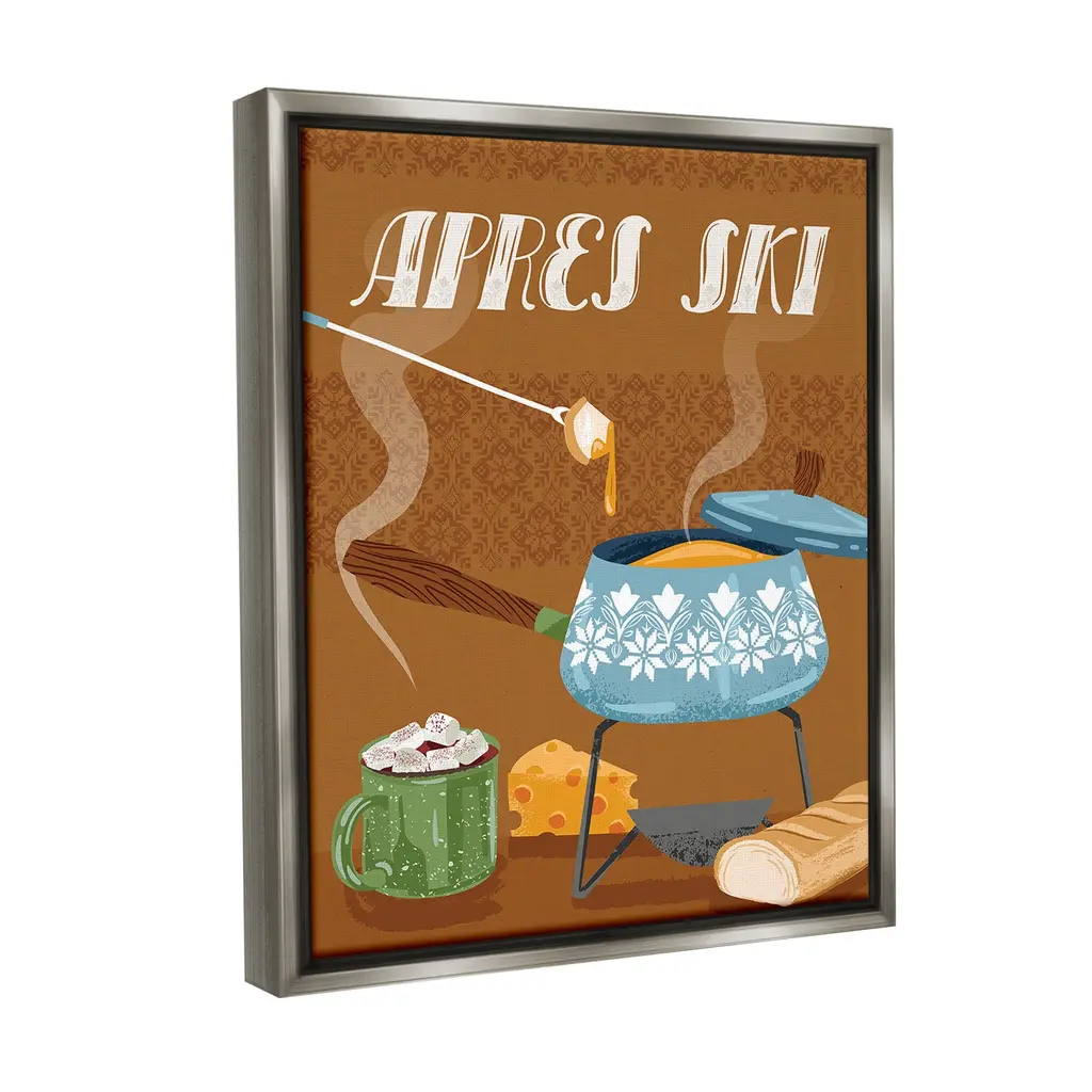 Elevate your home or office to the next level with Stupell Framed Floating Canvas Wall Art. Our premium hand-stretched canvas is mounted securely into a sturdy lightweight frame. The museum-style gap between the wrapped canvas and the box frame gives the illusion of floating artwork. Stupell Wall Art is made in the USA.Features: Dimensions: 17 x 1.7 x 21 Frame, 16 x 1.5 x 20 Canvas ArtFloating Frame Canvas Products are available in sizes 17"x21" and 25"x31". All Floating Frame Canvas Products have a 1.7" Depth.Wall Art is Ready to Hang with Hardware Free Hanging. No Installation required. For Easy Set Up Lean or Layer Artwork on Shelf or Against Wall. Artwork is Permently Fixed into the Frame.Our elevated 1.7" Thick Floating Frame is the perfect complement to our canvas style Wall Art. We use only the highest quality inks in house with industry leading printing solutions. Canvas is hand stretched over a durable wood foundation and then mounted securly into a Modern Box Frame. Made in the USA.Artwork Relates To: Fondue, Cocoa, Coffee, Mug, Winter, Skiing, Bread, Food, Meal, Pattern, Apres SkiDesign by Arrolynn Weiderhold