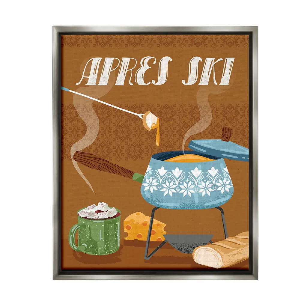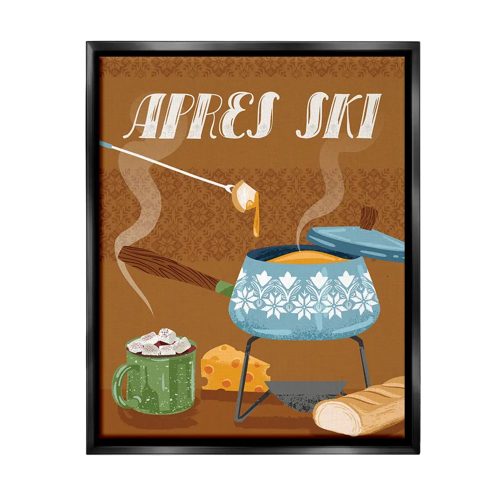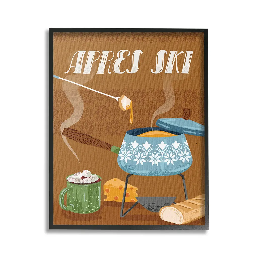 Add dimension to any room with our textured Framed Giclee Artwork. Our framed artwork is securely mounted into a 1.5-inch thick wood grain frame and ready to hang. Frames are available in three alluring styles: black, gray farmhouse and white. In addition, you should check out our oversized options if you want a statement piece. Stupell Wall Art is made in the USA.Features: Dimensions: 11 x 1.5 x 14 FramedFramed Giclee Products are available in the sizes 11"x14", 16"x20" or 24"x30". All Framed Giclee Products have a 1.5" Depth. Wall Art is Ready to Hang with Hardware Free Hanging. No installation required. For Easy Set Up Lean or Layer Artwork on Shelf or Against Wall.Our giclée prints are carefully mounted on a durable MDF backing, and then perfectly finished in a 1.5 inch thick woodgrain frame. Mounted frame colors include black, gray farmhouse and white. Made In USA.Artwork Relates To: Fondue, Cocoa, Coffee, Mug, Winter, Skiing, Bread, Food, Meal, Pattern, Apres SkiDesign by Arrolynn Weiderhold