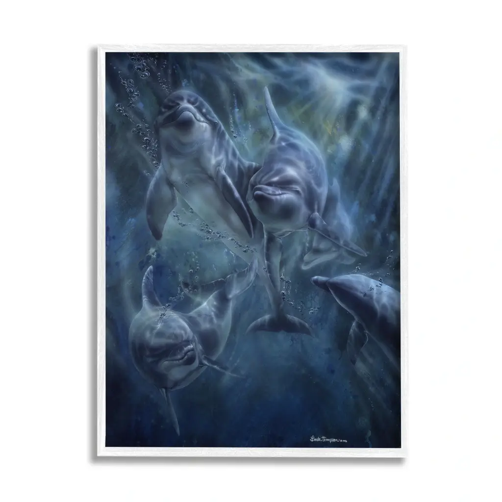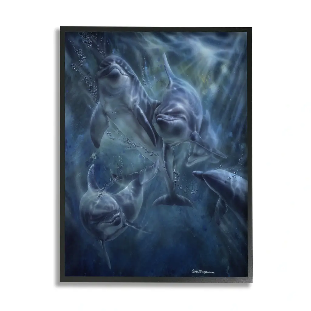 Add dimension to any room with our textured Framed Giclee Artwork. Our framed artwork is securely mounted into a 1.5-inch thick wood grain frame and ready to hang. Frames are available in three alluring styles: black, gray farmhouse and white. In addition, you should check out our oversized options if you want a statement piece. Stupell Wall Art is made in the USA.Features: Dimensions: 11 x 1.5 x 14 FramedFramed Giclee Sizes Include Standard: 11 x 1.5 x 14 Large: 16 x 1.5 x 20 Oversized: 24 x 1.5 x 30Wall Art is Ready to Hang - No Installation or Hardware Needed. For Easy Set Up Lean or Layer Artwork on Shelf or Against Wall.Our giclée prints are carefully mounted on a durable MDF backing, and then perfectly finished in a 1.5 inch thick woodgrain frame. Mounted frame colors include black, gray farmhouse and white. Made In USA.Artwork Relates To: Animal, Dolphin, Mammal, Sea Life, Aquatic, Water, Fish, UnderwaterDesign by Linda Thompson