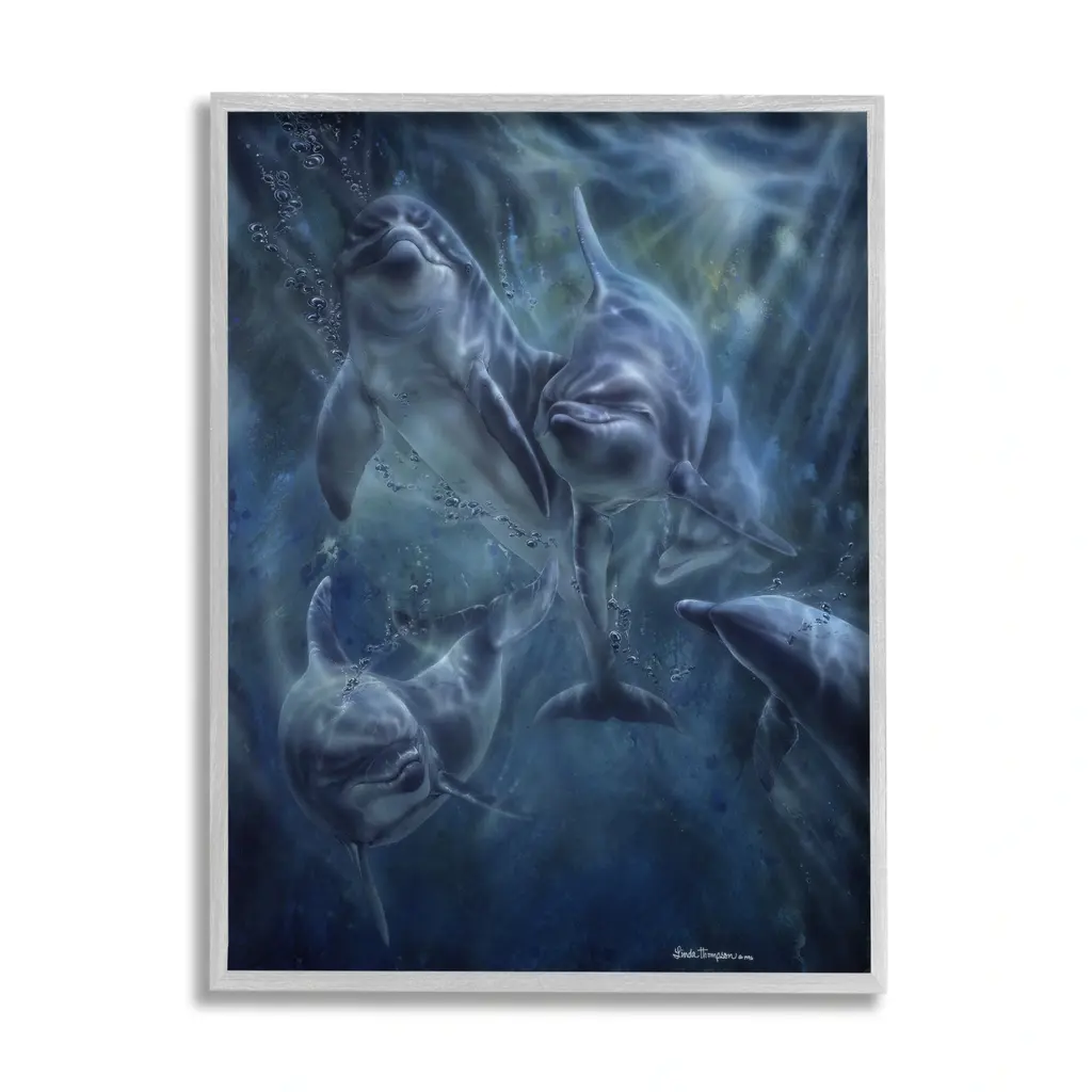 Add dimension to any room with our textured Framed Giclee Artwork. Our framed artwork is securely mounted into a 1.5-inch thick wood grain frame and ready to hang. Frames are available in three alluring styles: black, gray farmhouse and white. In addition, you should check out our oversized options if you want a statement piece. Stupell Wall Art is made in the USA.Features: Dimensions: 11 x 1.5 x 14 FramedFramed Giclee Sizes Include Standard: 11 x 1.5 x 14 Large: 16 x 1.5 x 20 Oversized: 24 x 1.5 x 30Wall Art is Ready to Hang - No Installation or Hardware Needed. For Easy Set Up Lean or Layer Artwork on Shelf or Against Wall.Our giclée prints are carefully mounted on a durable MDF backing, and then perfectly finished in a 1.5 inch thick woodgrain frame. Mounted frame colors include black, gray farmhouse and white. Made In USA.Artwork Relates To: Animal, Dolphin, Mammal, Sea Life, Aquatic, Water, Fish, UnderwaterDesign by Linda Thompson