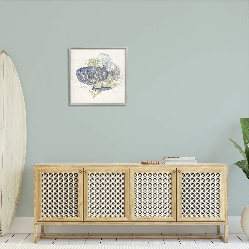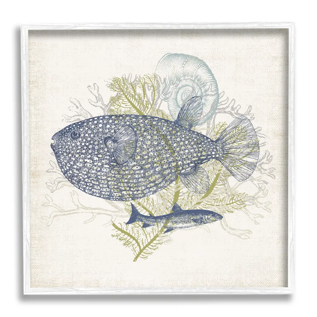 Our Framed Giclee Wall Art adds a touch of class to any space in your home or office. Frames are available in three alluring styles: black, gray farmhouse and white. Our textured artwork will add more depth and dimension to any space. Each piece is mounted with a 1.5 inch thick wood grain frame that is ready to hang! Looking for a statement piece? We have oversized artwork available.Features: Wall Art is Ready to Hang - No Installation or Hardware Needed. For Easy Set Up Lean or Layer Artwork on Shelf or Against Wall.Our giclee prints are carefully mounted on a durable MDF backing, and then perfectly finished in a 1.5 inch thick woodgrain frame. Mounted frame colors include black, gray farmhouse and white. Made In USA.Artwork Relates To: Fish; Animal; Drawing, Botanical, Nautical, Sea LifeDesign by Victoria Barnes