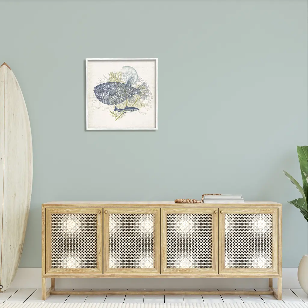 Our Framed Giclee Wall Art adds a touch of class to any space in your home or office. Frames are available in three alluring styles: black, gray farmhouse and white. Our textured artwork will add more depth and dimension to any space. Each piece is mounted with a 1.5 inch thick wood grain frame that is ready to hang! Looking for a statement piece? We have oversized artwork available.Features: Wall Art is Ready to Hang - No Installation or Hardware Needed. For Easy Set Up Lean or Layer Artwork on Shelf or Against Wall.Our giclee prints are carefully mounted on a durable MDF backing, and then perfectly finished in a 1.5 inch thick woodgrain frame. Mounted frame colors include black, gray farmhouse and white. Made In USA.Artwork Relates To: Fish; Animal; Drawing, Botanical, Nautical, Sea LifeDesign by Victoria Barnes
