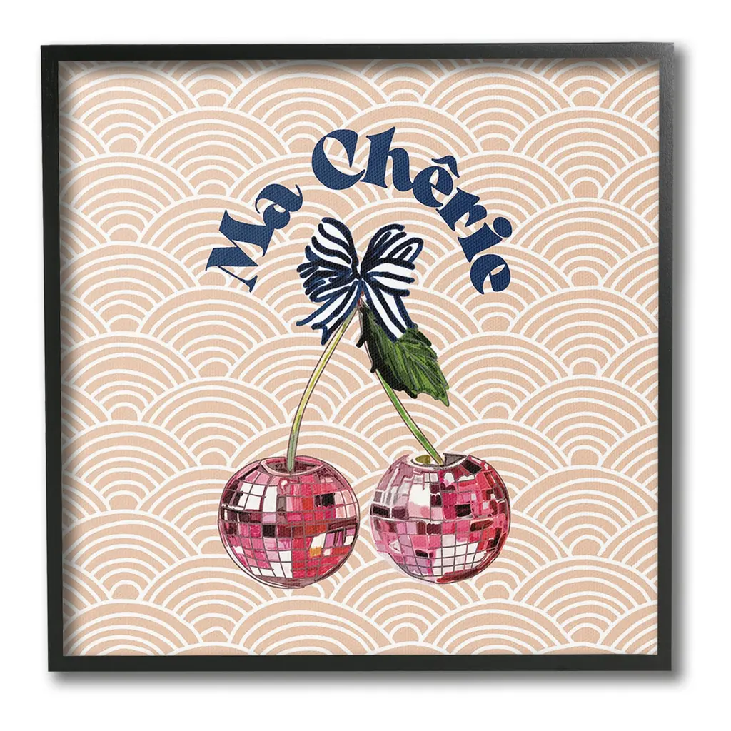 Elevate your home or office to the next level with Stupell Framed Floating Canvas Wall Art. Our premium hand-stretched canvas is mounted securely into a sturdy lightweight frame. The museum-style gap between the wrapped canvas and the box frame gives the illusion of floating artwork. Stupell Wall Art is made in the USA.Features: Dimensions: 18 x 1.7 x 18 Frame, 17 x 1.5 x 17 Canvas ArtFloating Frame Canvas Products are available in sizes 18"x18" and 25"x25". All Floating Frame Canvas Products have a 1.7" Depth.Wall Art is Ready to Hang with Hardware Free Hanging. No Installation required. For Easy Set Up Lean or Layer Artwork on Shelf or Against Wall. Artwork is Permently Fixed into the Frame.Our elevated 1.7" Thick Floating Frame is the perfect complement to our canvas style Wall Art. We use only the highest quality inks in house with industry leading printing solutions. Canvas is hand stretched over a durable wood foundation and then mounted securly into a Modern Box Frame. Made in the USA.Artwork Relates To: Dance, Music, Disco, Pattern, Fruit, Cherry, Geometric, GlamDesign by Amelia Noyes