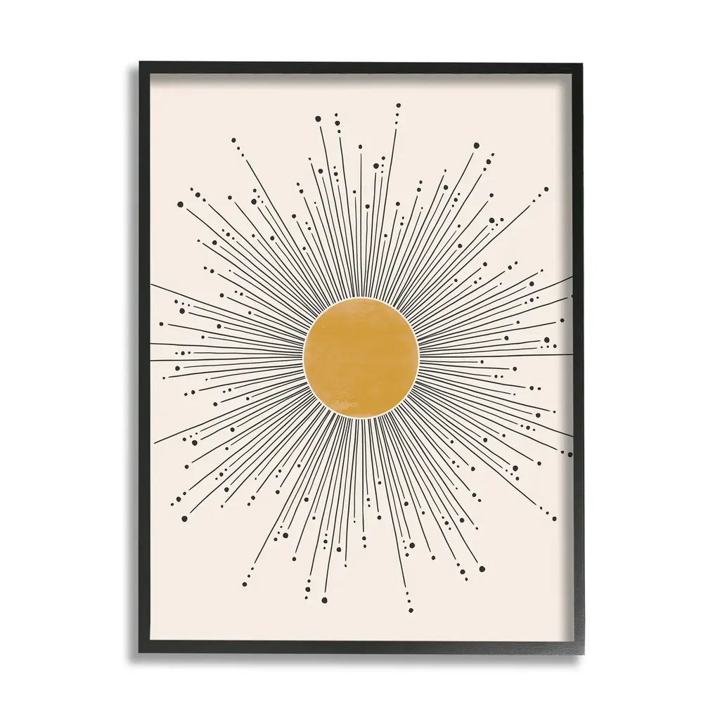 Stupell Art Deco Summer Sun Geometric Line Bursts Framed Wall Art - Yellow - 11 X 14 - Grey