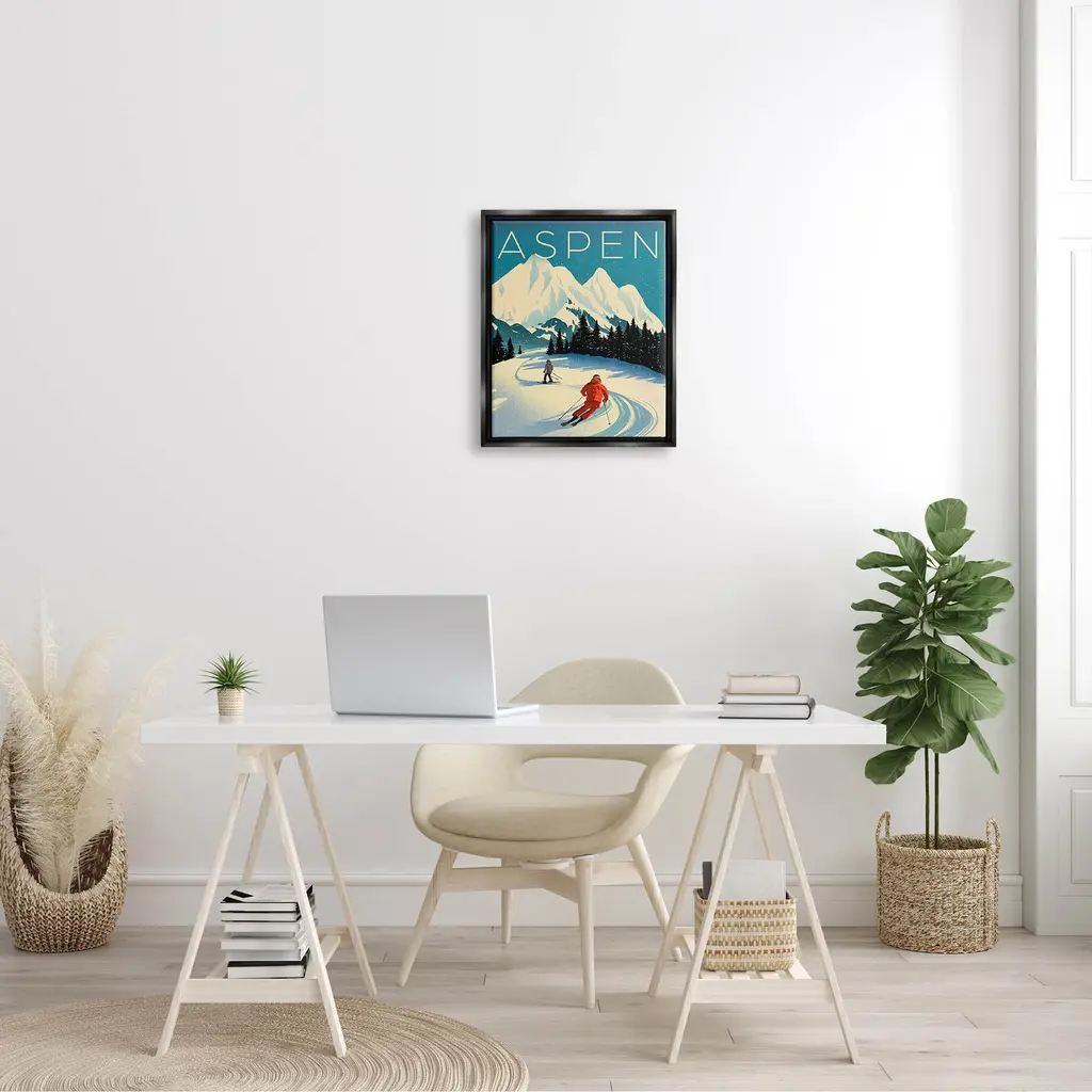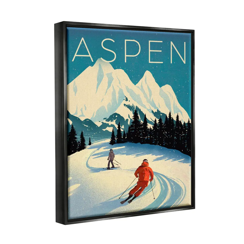 Elevate your home or office to the next level with Stupell Framed Floating Canvas Wall Art. Our premium hand stretched canvas is mounted securely into a sturdy lightweight frame. The museum style gap between wrapped canvas and box frame gives the illusion of floating artwork.Features:Dimensions: 17 x 1.7 x 21 Frame, 16 x 1.5 x 20 Canvas ArtFloating Frame Sizes IncludeStandard: 17 x 1.7 x 21Oversized: 25 x 1.7 x 31Wall Art is Ready to Hang - No Installation or Hardware Needed. For Easy Set Up Lean or Layer Artwork on Shelf or Against Wall.Our elevated 1.7" Thick Floating Frame is the perfect complement to our canvas style Wall Art. We use only the highest quality inks in house with industry leading printing solutions. Canvas is hand stretched over a durable wood foundation and then mounted securely into a Modern Box Frame. Made in the USA.Artwork Relates To: Outdoors; Nature; Snow; Cable Car; Peak; Mountain Range; Mountain; Winter Sports, Slope, Person, Skiing, AspenDesign by Ziwei Li