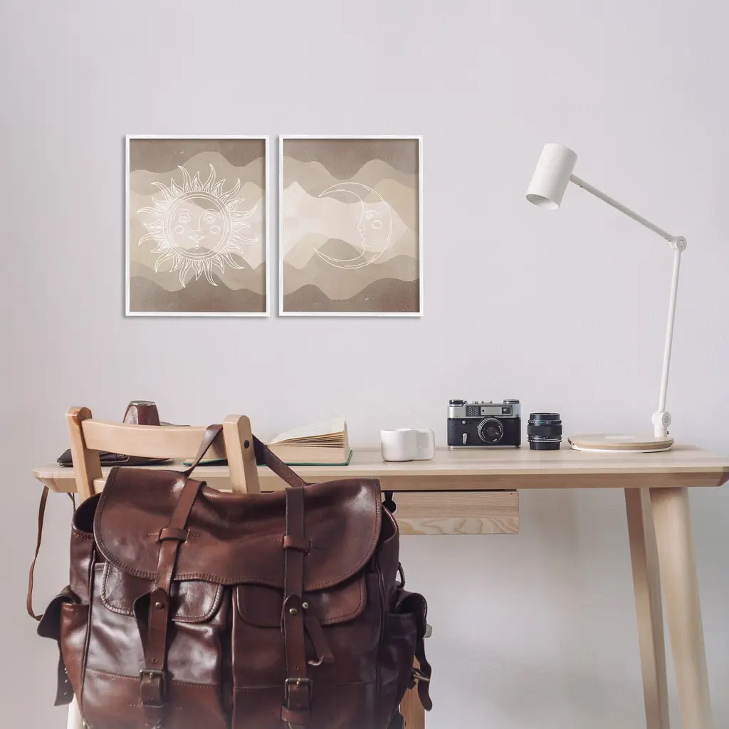Fill any space in your home or office with our Framed Wall Art Sets. Our framed artwork is securely mounted into a 1.5-inch thick wood grain frame and ready to hang. Frames are available in three alluring styles: black, gray farmhouse and white. Stupell Wall Art is made in the USA.Features: Dimensions: 2 Piece Set, Each Panel is 11 x 1.5 x 14 FramedTwo Piece Framed Giclee Sets are available as 11"x14", 16"x20" or 24"x30" Panels. All Framed Giclee Products have a 1.5" Depth.Wall Art is Ready to Hang with Hardware Free Hanging. No installation required. For Easy Set Up Lean or Layer Artwork on Shelf or Against Wall.Curated Wall Art Sets make it easy for you complete the theme for any room. Our giclée prints are carefully mounted on a durable MDF backing, and then perfectly finished in a 1.5 inch thick woodgrain frame. Mounted frame colors include black, gray farmhouse and white. Made In USA.Artwork Relates To: Sun, Moon, Nature, Abstract, Boho, Southwestern, Modern, Pattern, Geometric, Celestial, AstralDesign by Lil' Rue