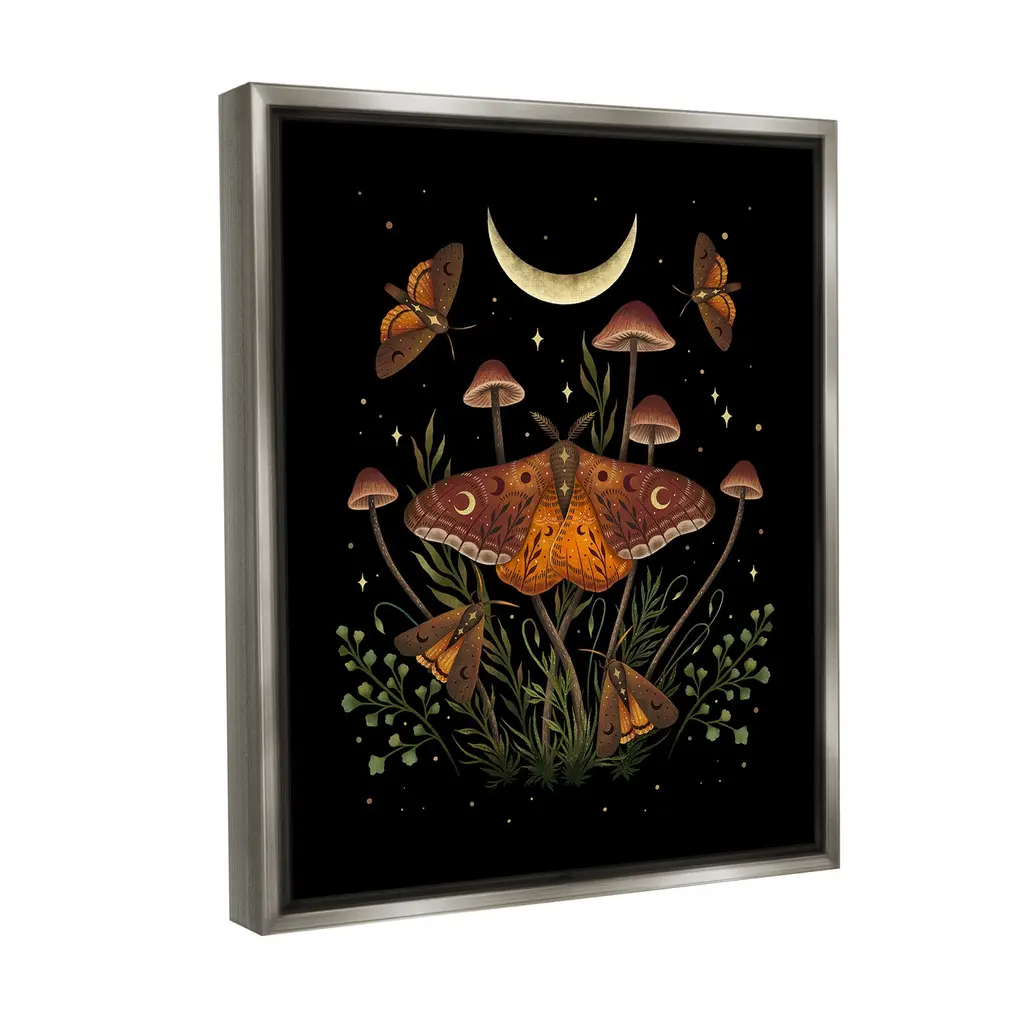 Elevate your home or office to the next level with Stupell Framed Floating Canvas Wall Art. Our premium hand-stretched canvas is mounted securely into a sturdy lightweight frame. The museum-style gap between the wrapped canvas and the box frame gives the illusion of floating artwork. Stupell Wall Art is made in the USA.Features: Dimensions: 17 x 1.7 x 21 Frame, 16 x 1.5 x 20 Canvas ArtFloating Frame Canvas Products are available in sizes 17"x21" and 25"x31". All Floating Frame Canvas Products have a 1.7" Depth.Wall Art is Ready to Hang with Hardware Free Hanging. No Installation required. For Easy Set Up Lean or Layer Artwork on Shelf or Against Wall. Artwork is Permently Fixed into the Frame.Our elevated 1.7" Thick Floating Frame is the perfect complement to our canvas style Wall Art. We use only the highest quality inks in house with industry leading printing solutions. Canvas is hand stretched over a durable wood foundation and then mounted securly into a Modern Box Frame. Made in the USA.Artwork Relates To: Astronomy, Moon, Nature, Night, Animal, Butterfly, Insect, Invertebrate, Fungus, Plant, Painting, Moth, Pattern, Sparkle, AstralDesign by Episodic Drawings