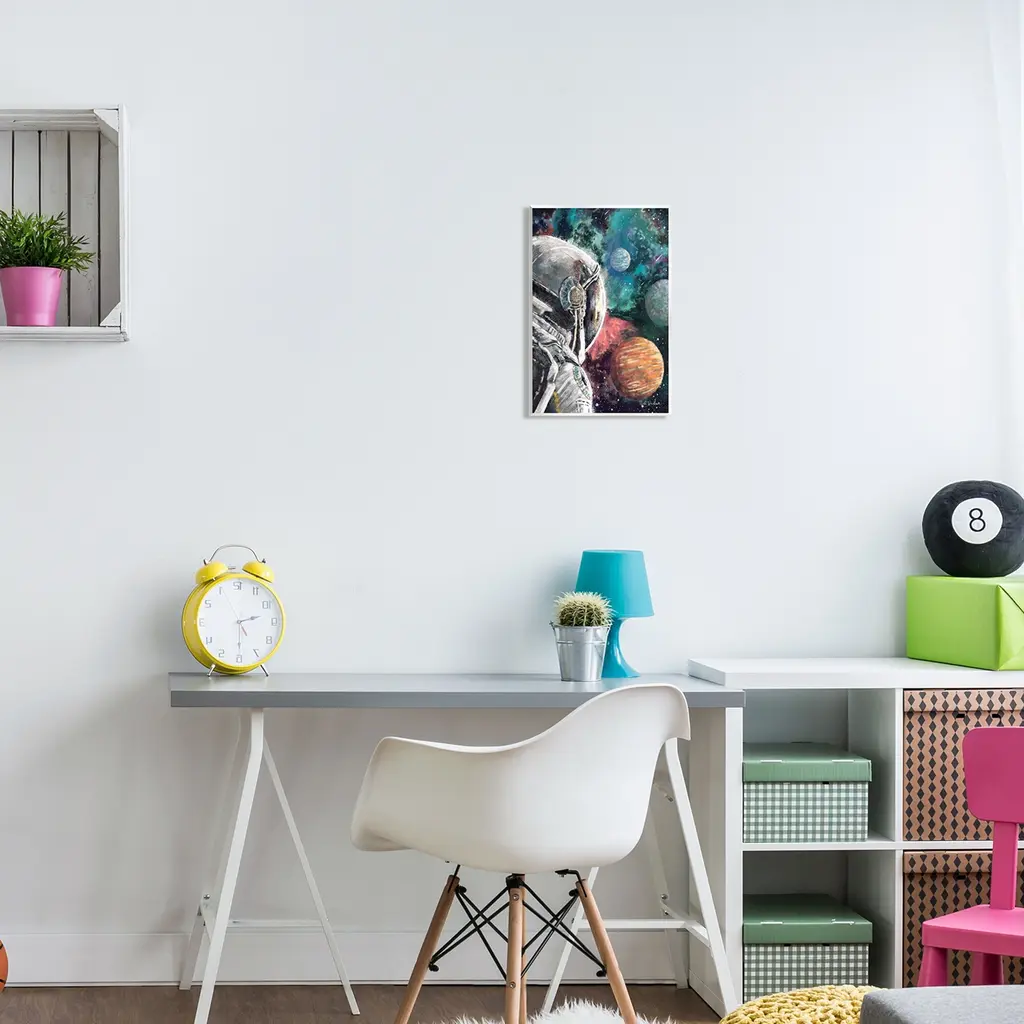 Our wall plaques start as high-quality lithograph prints mounted on durable 0.5-inch thick MDF wood. Each piece is hand finished and comes with a fresh layer of white foil on the sides to give it a crisp, clean look. Plaques arrive ready to hang without installation and come with removable plastic corners to keep them from damage in transit. Stupell Industries Wall Art is made in the USA.Features: Dimensions: 10 x 0.5 x 15 InchesWall Plaque Sizes Include Standard: 10 x 0.5 x 15 Oversized: 13 x 0.5 x 19Wall Art is Ready to Hang with Hardware Free Hanging. No installation required. For Easy Set Up Lean or Layer Artwork on Shelf or Against Wall.All of our wall plaques start off as high quality lithograph prints that are then mounted on durable 0.5 inch thick MDF wood. Each piece is hand finished and comes with a fresh layer of foil on the sides to give it a crisp clean look. Made In USA.Artwork Relates To: Astronomy, Outer Space, Person, Planet, Astronaut, NebulaDesign by Nidhi Wadhwa