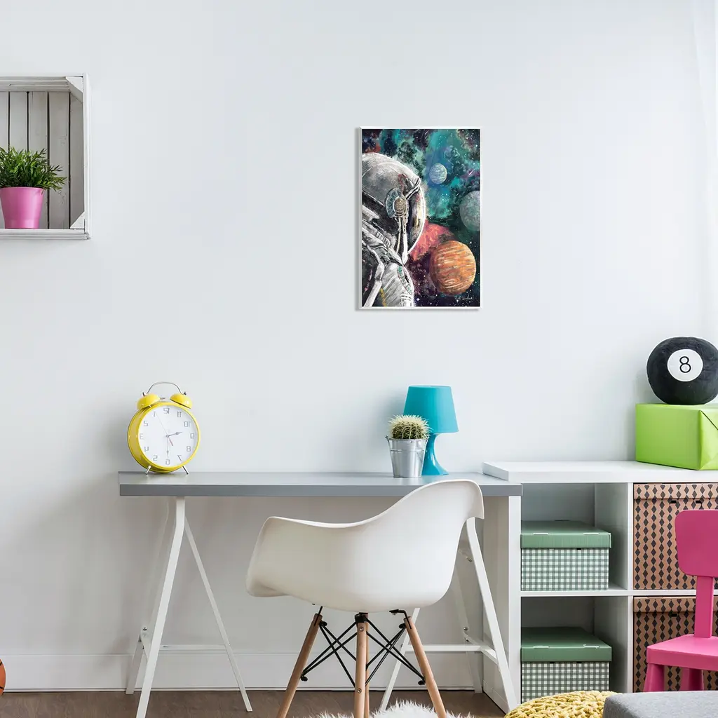 Our wall plaques start as high-quality lithograph prints mounted on durable 0.5-inch thick MDF wood. Each piece is hand finished and comes with a fresh layer of white foil on the sides to give it a crisp, clean look. Plaques arrive ready to hang without installation and come with removable plastic corners to keep them from damage in transit. Stupell Industries Wall Art is made in the USA.Features: Dimensions: 10 x 0.5 x 15 InchesWall Plaque Sizes Include Standard: 10 x 0.5 x 15 Oversized: 13 x 0.5 x 19Wall Art is Ready to Hang with Hardware Free Hanging. No installation required. For Easy Set Up Lean or Layer Artwork on Shelf or Against Wall.All of our wall plaques start off as high quality lithograph prints that are then mounted on durable 0.5 inch thick MDF wood. Each piece is hand finished and comes with a fresh layer of foil on the sides to give it a crisp clean look. Made In USA.Artwork Relates To: Astronomy, Outer Space, Person, Planet, Astronaut, NebulaDesign by Nidhi Wadhwa