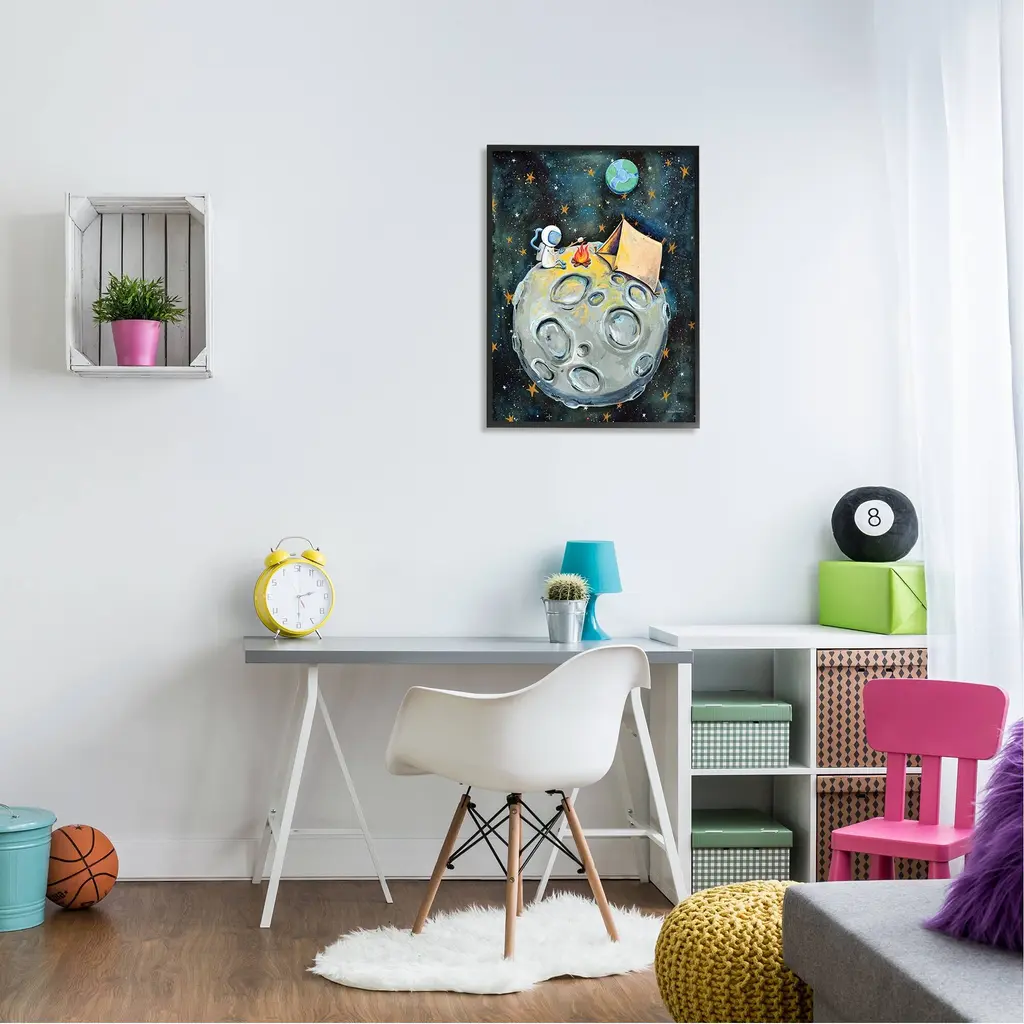 Stupell Astronaut Camping Moon Whimsical Stars Outer Space Framed Wall Art - Blue - 24 X 30 - Black