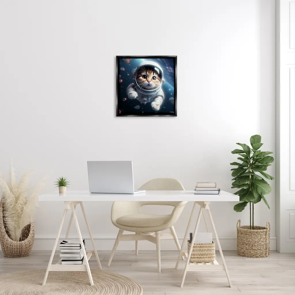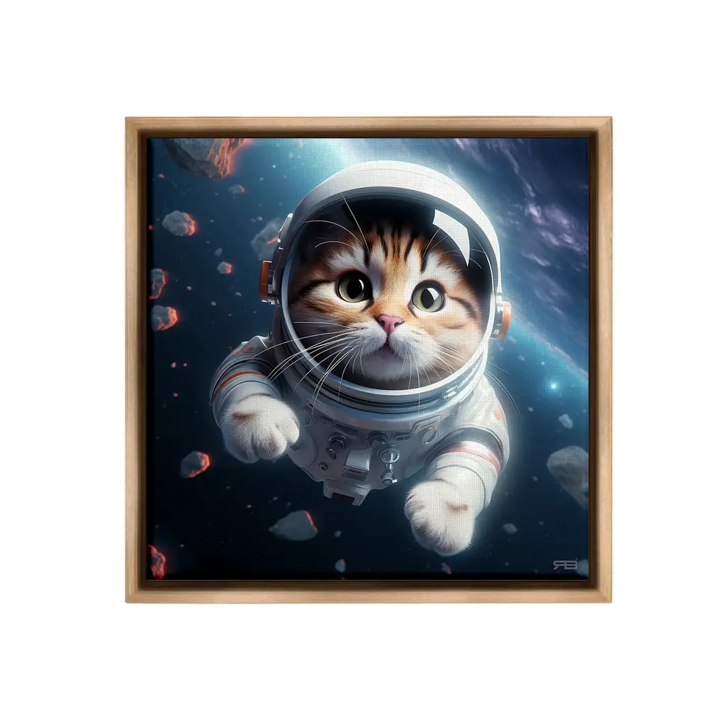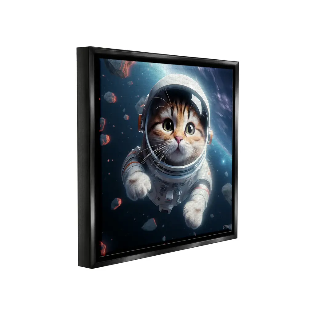 Elevate your home or office to the next level with Stupell Framed Floating Canvas Wall Art. Our premium hand-stretched canvas is mounted securely into a sturdy lightweight frame. The museum-style gap between the wrapped canvas and the box frame gives the illusion of floating artwork. Stupell Wall Art is made in the USA.Features: Dimensions: 18 x 1.7 x 18 Frame, 17 x 1.5 x 17 Canvas ArtFloating Frame Canvas Products are available in sizes 18"x18" and 25"x25". All Floating Frame Canvas Products have a 1.7" Depth.Wall Art is Ready to Hang with Hardware Free Hanging. No Installation required. For Easy Set Up Lean or Layer Artwork on Shelf or Against Wall. Artwork is Permently Fixed into the Frame.Our elevated 1.7" Thick Floating Frame is the perfect complement to our canvas style Wall Art. We use only the highest quality inks in house with industry leading printing solutions. Canvas is hand stretched over a durable wood foundation and then mounted securly into a Modern Box Frame. Made in the USA.Artwork Relates To: Animal, Cat, Mammal, Pet, Kitten, Astronomy, Outer Space, Asteroid, Planet, Galaxy, AstronautDesign by RB