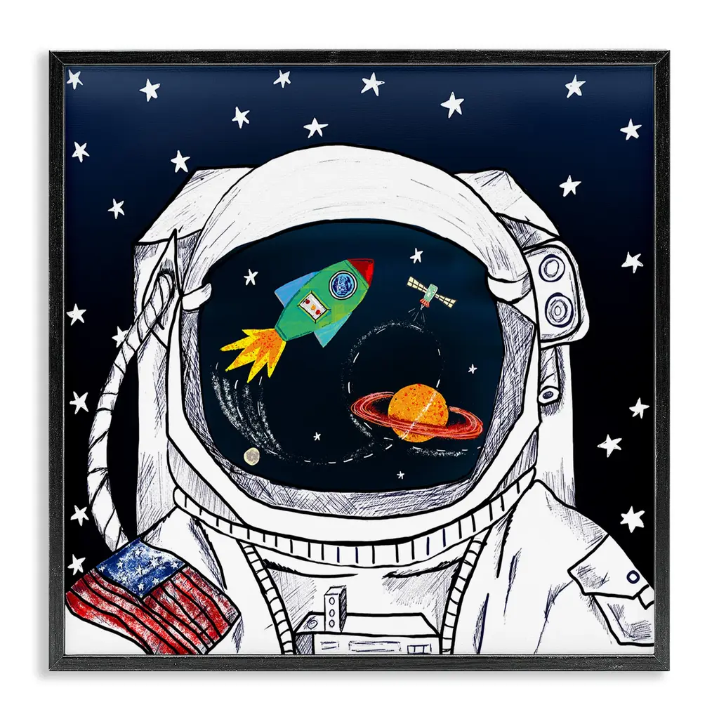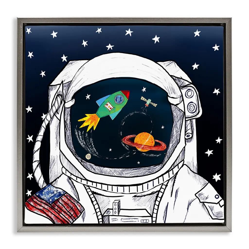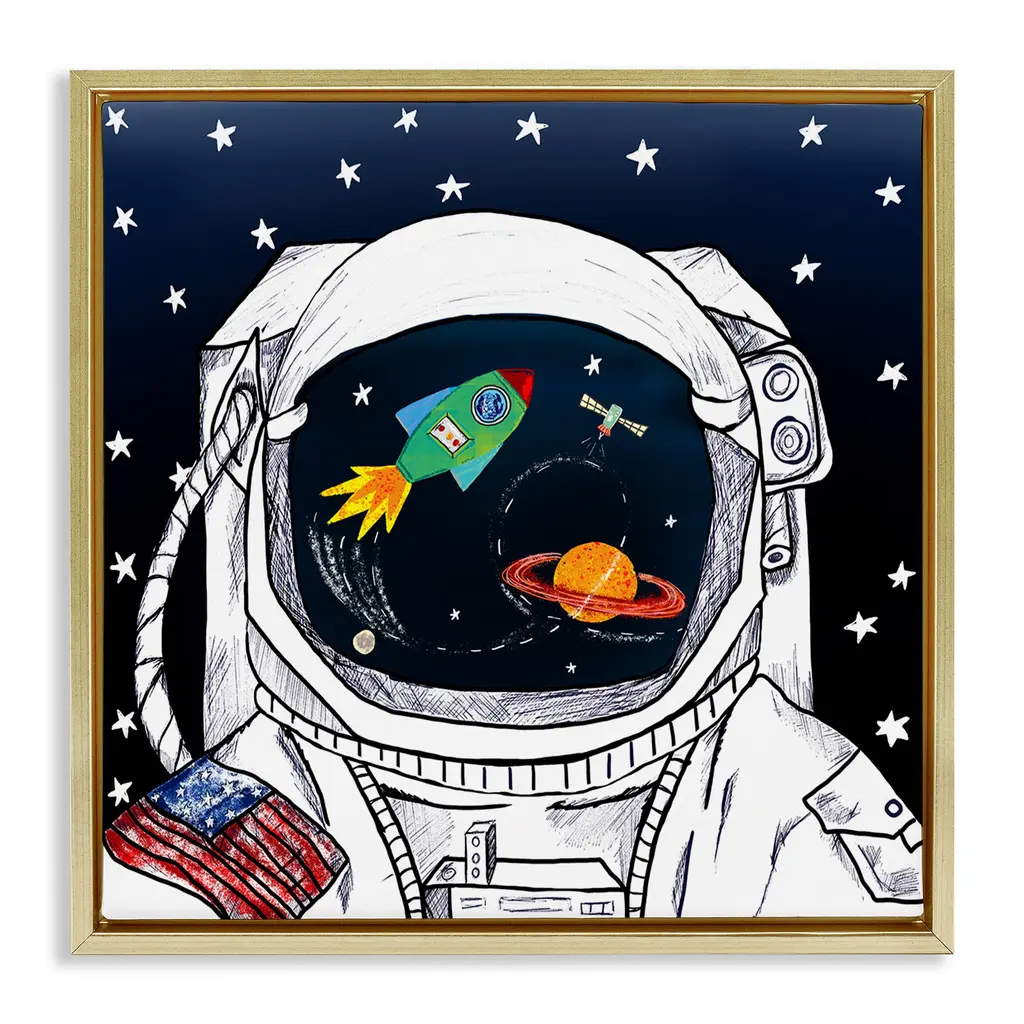 Elevate your home or office to the next level with Stupell Framed Floating Canvas Wall Art. Our premium hand-stretched canvas is mounted securely into a sturdy lightweight frame. The museum-style gap between the wrapped canvas and the box frame gives the illusion of floating artwork. Stupell Wall Art is made in the USA.Features: Dimensions: 18 x 1.7 x 18 Frame, 17 x 1.5 x 17 Canvas ArtFloating Frame Canvas Products are available in sizes 18"x18" and 25"x25". All Floating Frame Canvas Products have a 1.7" Depth.Wall Art is Ready to Hang with Hardware Free Hanging. No Installation required. For Easy Set Up Lean or Layer Artwork on Shelf or Against Wall. Artwork is Permently Fixed into the Frame.Our elevated 1.7" Thick Floating Frame is the perfect complement to our canvas style Wall Art. We use only the highest quality inks in house with industry leading printing solutions. Canvas is hand stretched over a durable wood foundation and then mounted securly into a Modern Box Frame. Made in the USA.Artwork Relates To: Outer Space, Astronaut, Galaxy, Rocketship, Planet, Space Ship, StarsDesign by Sangita Bachelet